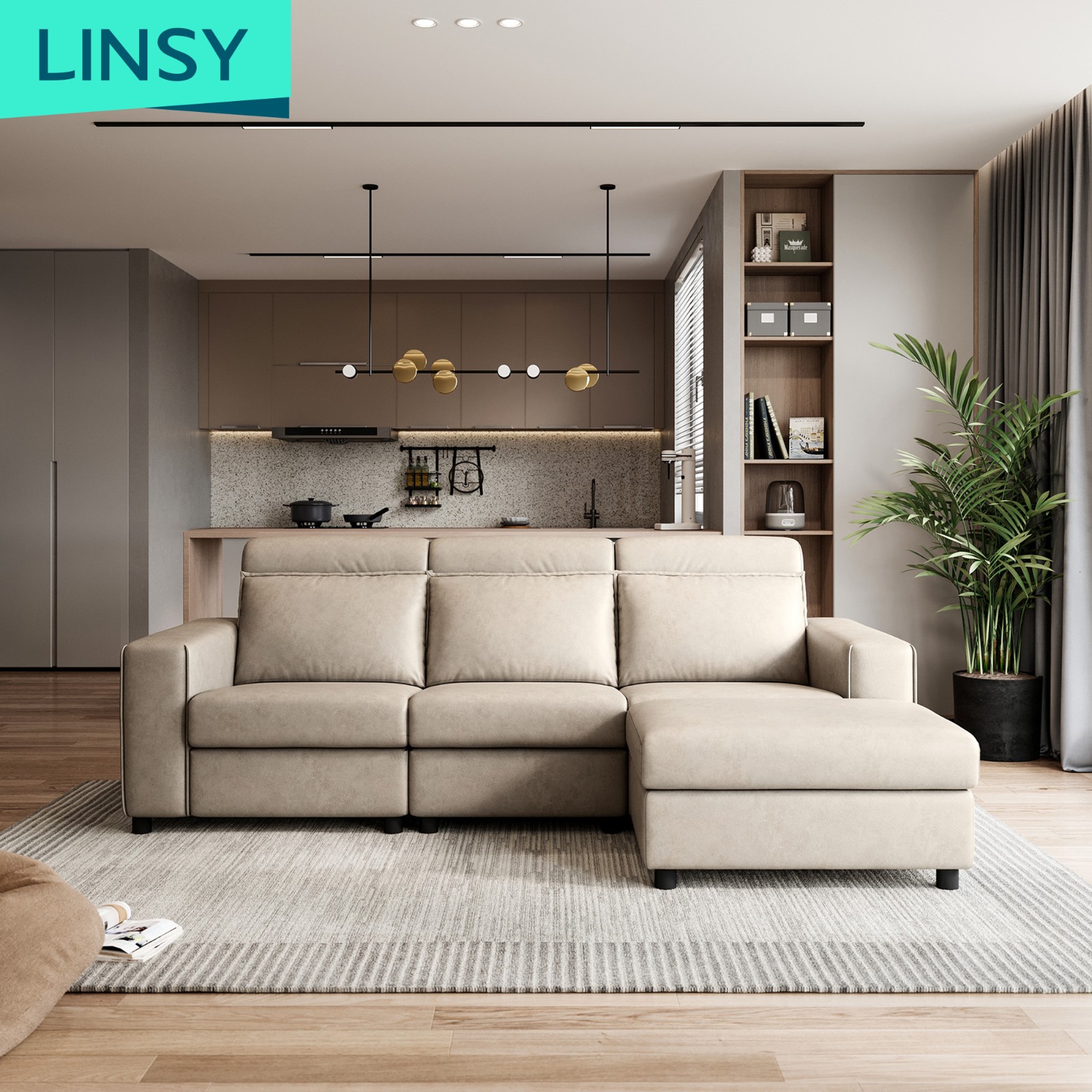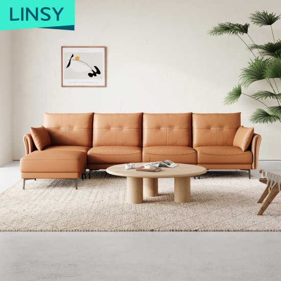 This LINSY leather sofa exudes a captivating allure and impeccable craftsmanship. Meticulously crafted from premium, buttery soft leather, it envelops you in an unparalleled sense of comfort. The sofa's graceful contours and refined design exude timeless elegance, injecting a touch of opulence into any space.