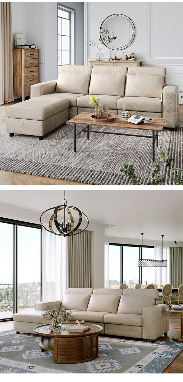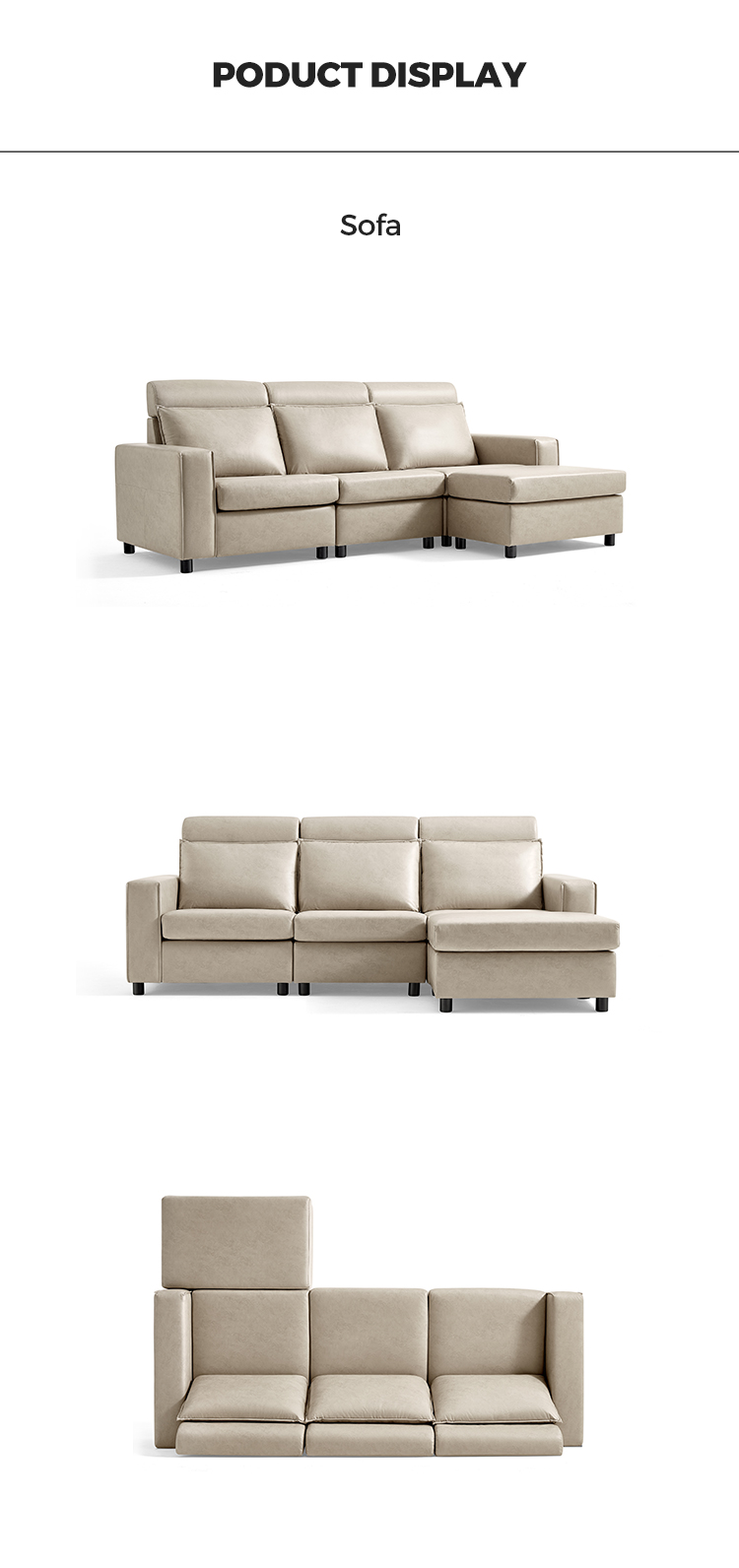 America Style Beige Color Leather Sofa with Chaise S110If you are interested in our products and want to know more details,please leave a message here,we will reply you as soon as we can.