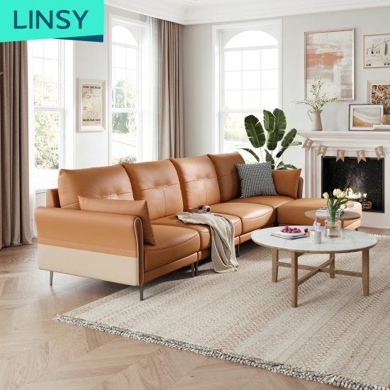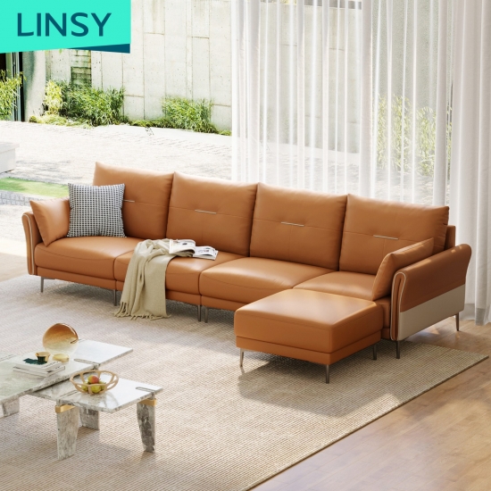 LINSY leather sofa with an orange color palette seamlessly blends contemporary aesthetics with modern charm, effortlessly complementing a range of decorative styles. Sink into the expansive seat and indulge in the plush cushions that offer unrivaled support and an exquisite lounging experience. Whether it's for cherished family moments or moments of personal indulgence, this leather sofa is the epitome of refined companionship for your living space.