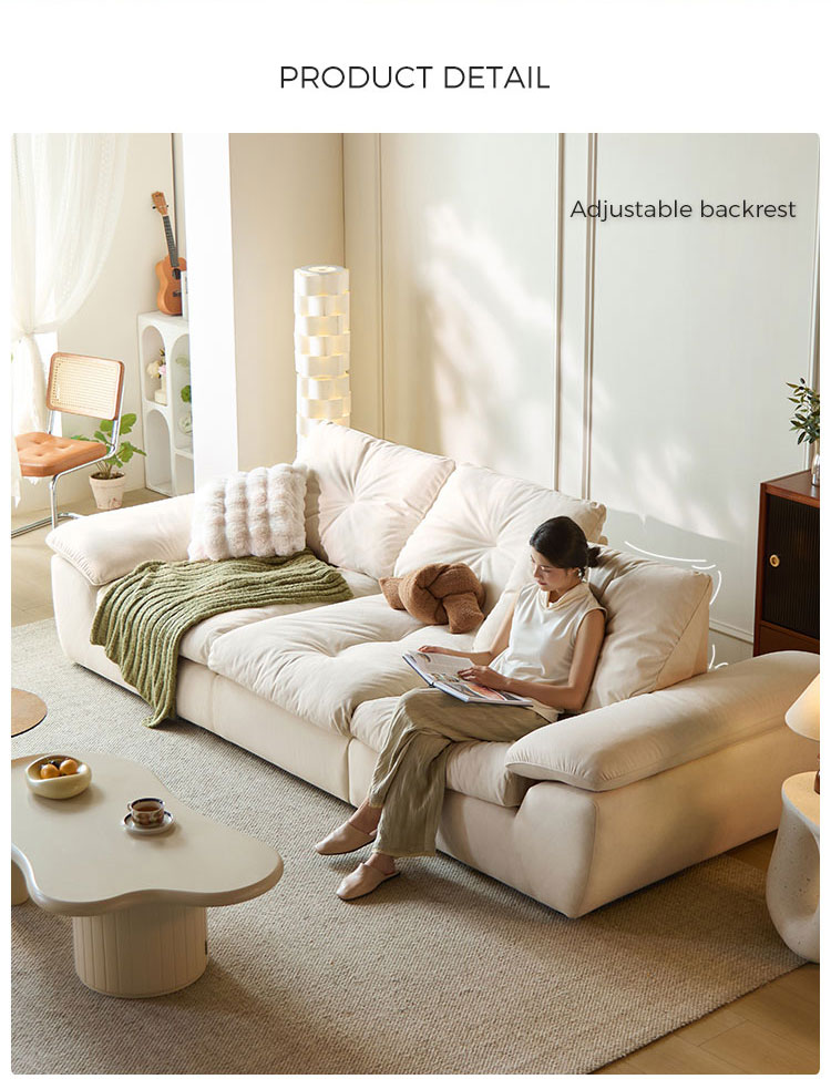 Premium Fabric: Upholstered in a high-quality, durable beige-white fabric that is soft to the touch and easy to clean.