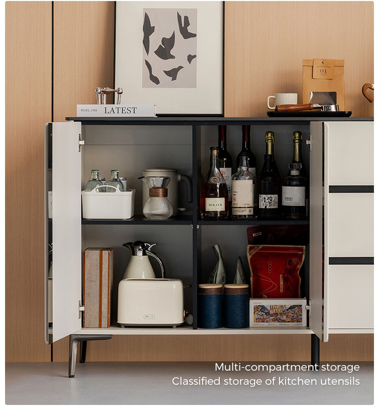 Elevate your dining space with this high-end black and white sideboard, a perfect fusion of modern elegance and functional storage. Crafted with meticulous attention to detail, its striking two-tone design features a glossy white finish paired with matte black accents, creating a bold yet timeless aesthetic.