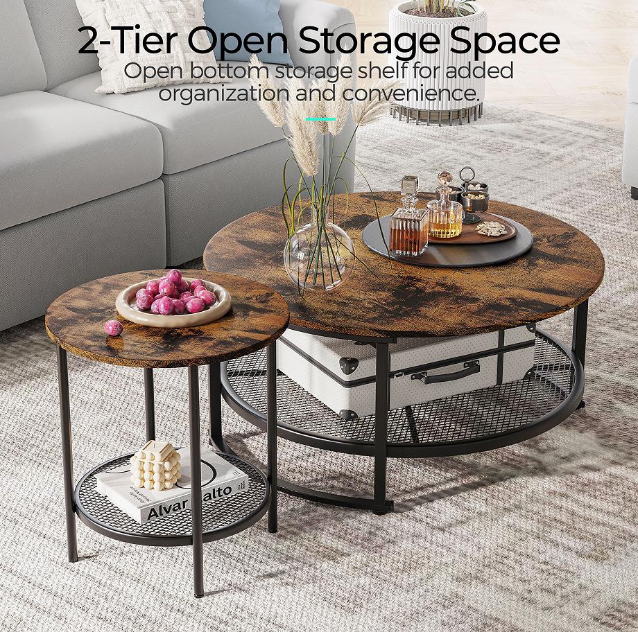 Modern Round Sintered Stone Nesting Wood Coffee Table with Drawers in Grey LL1LIf you are interested in our products and want to know more details,please leave a message here,we will reply you as soon as we can.