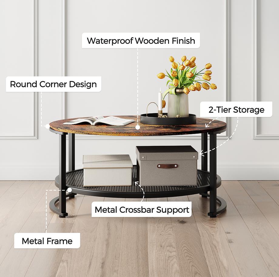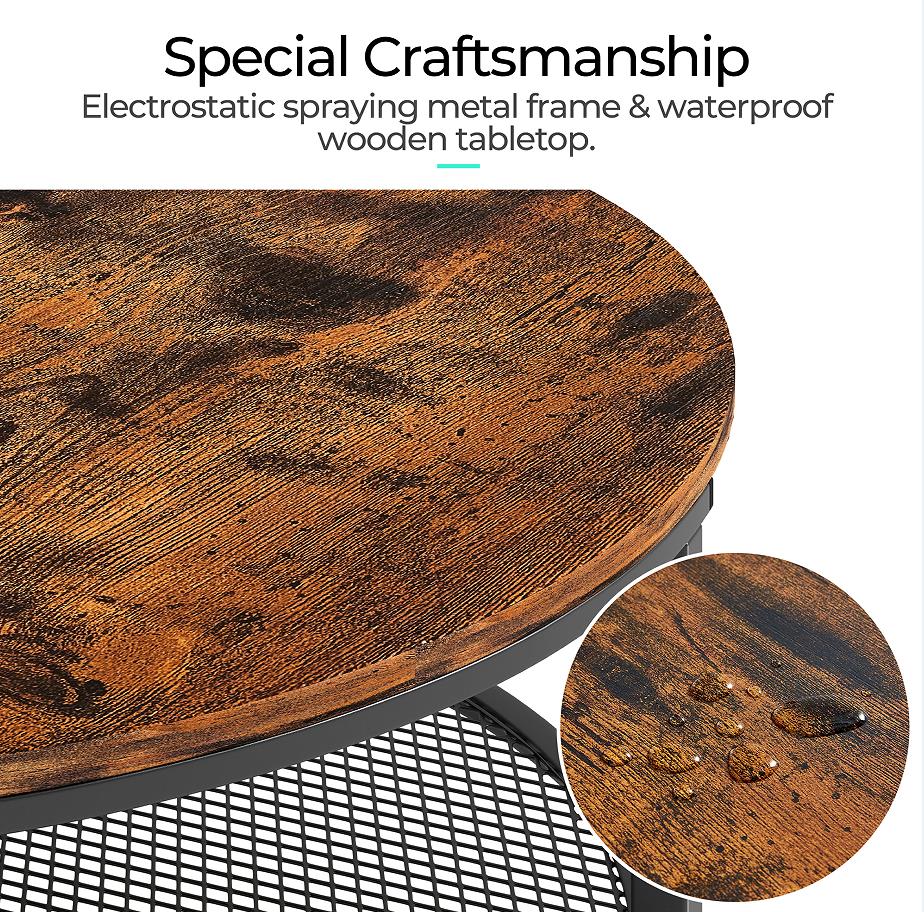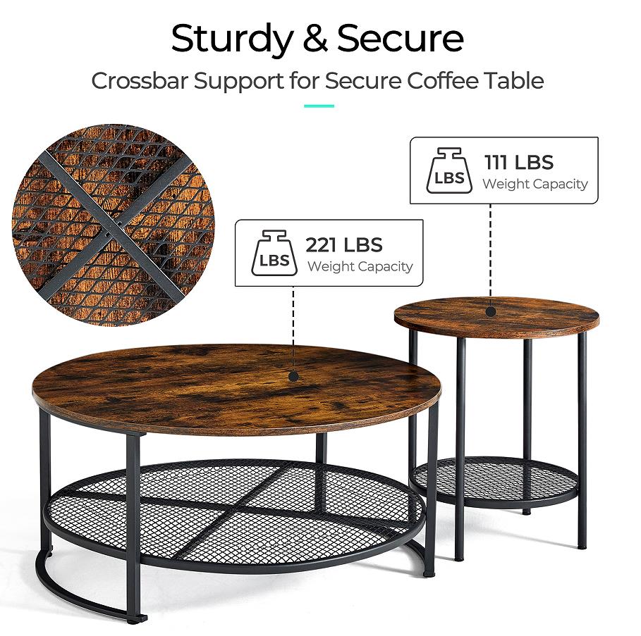 The added curved metal frame between the legs lends exceptional strength and ensures the table's structural integrity over time. The bottom metal shelf part is engineering designed with a U-shaped groove that achieves reducing stress while increasing heavy-duty ability.