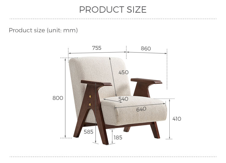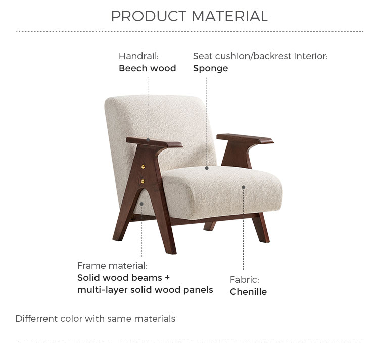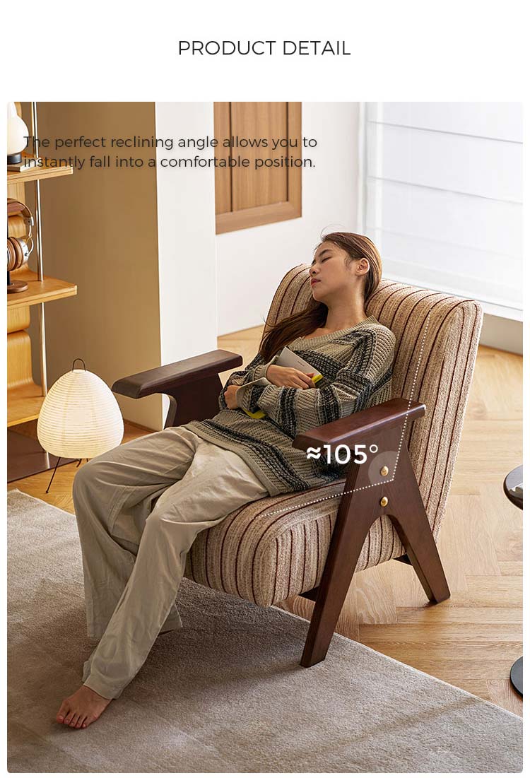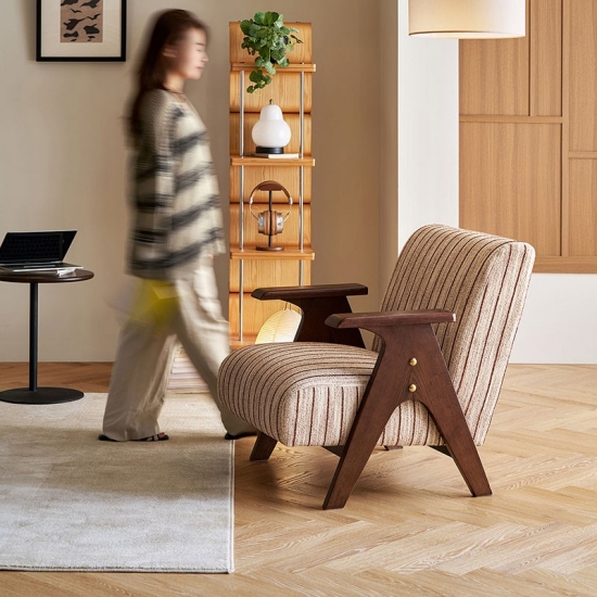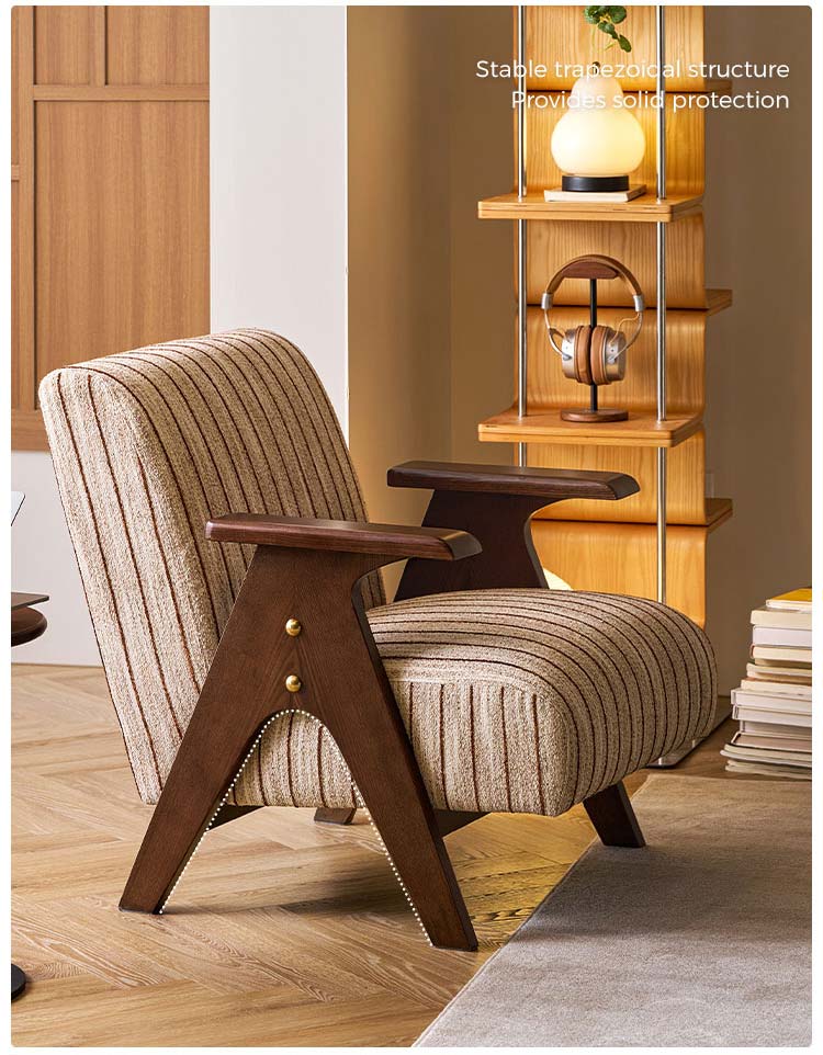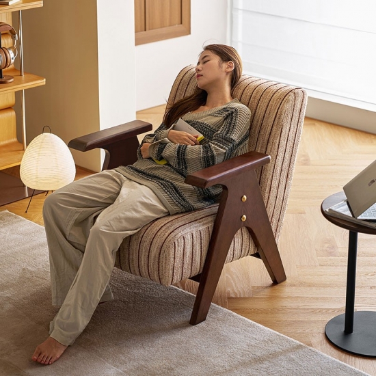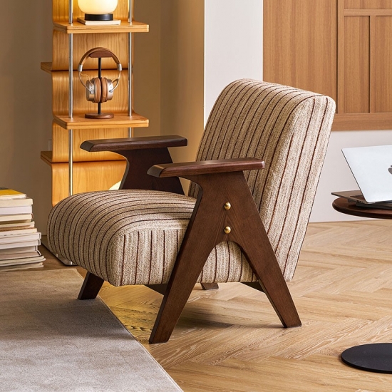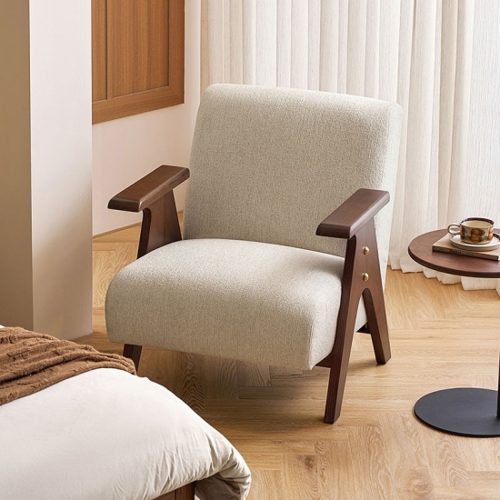 Crafted for enduring comfort and timeless style, this modern chair combines a sturdy, solid wood frame with premium fabric upholstery. The generously padded seat and backrest offer exceptional support, making it the perfect spot for reading or relaxing in your living room. Its versatile design seamlessly blends with various décor styles, from rustic to modern. A durable and elegant addition to any home.