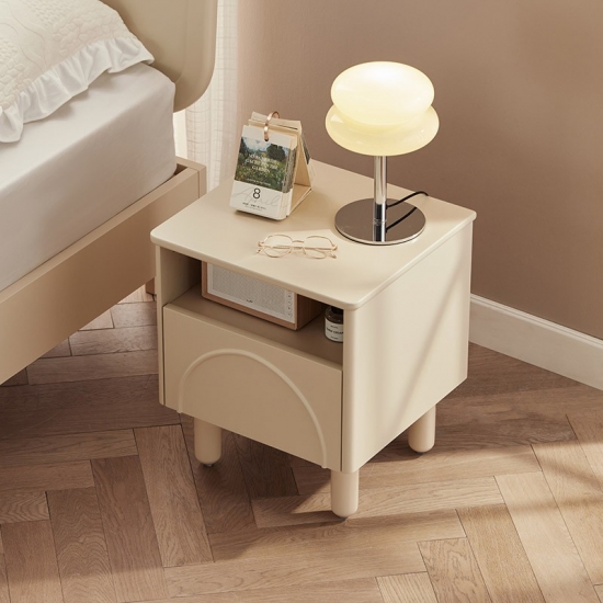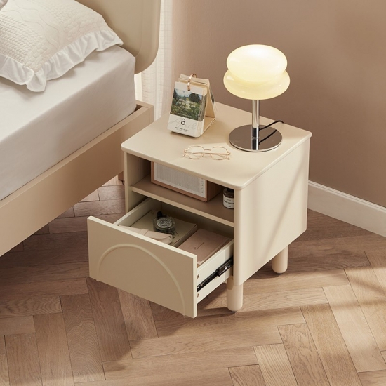 It includes drawers for additional storage, perfect for keeping essentials like books, glasses, or small items organized. The compact size makes it ideal for placement beside your bed, providing both practicality and aesthetic appeal. With white color, it is easy for decoration.