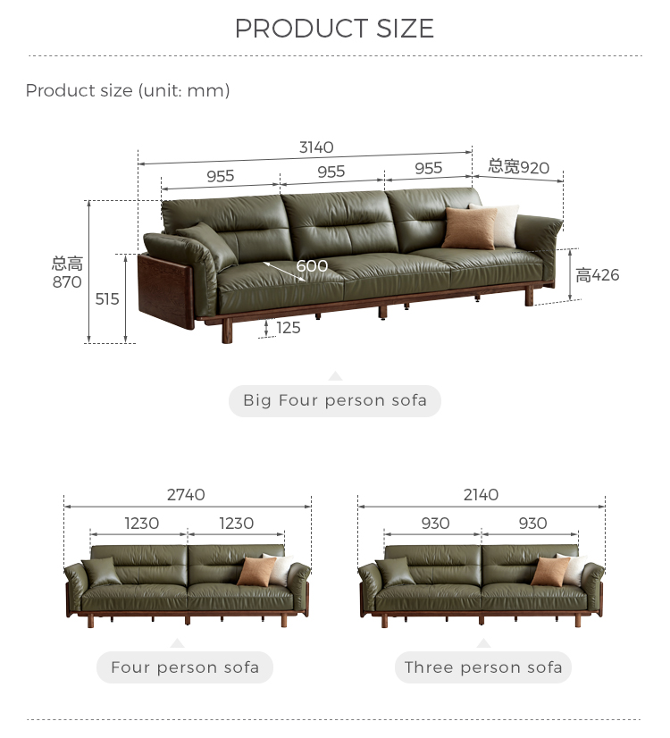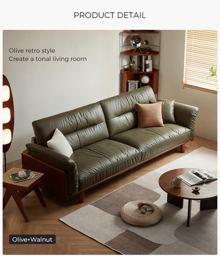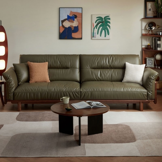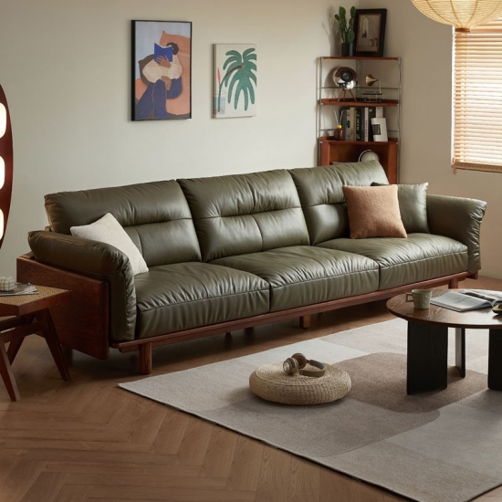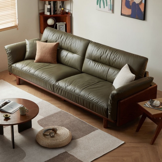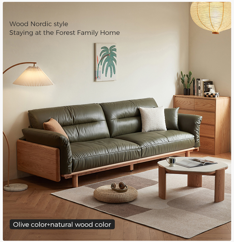 Upgrade your home with this new green color wood sofa. It is sleek and sophisticated, perfect for any living room style—from modern to traditional. Sink into soft cushions and enjoy exceptional support, making it perfect for lounging, family time, or entertaining guests. Don't miss the chance to choose now.