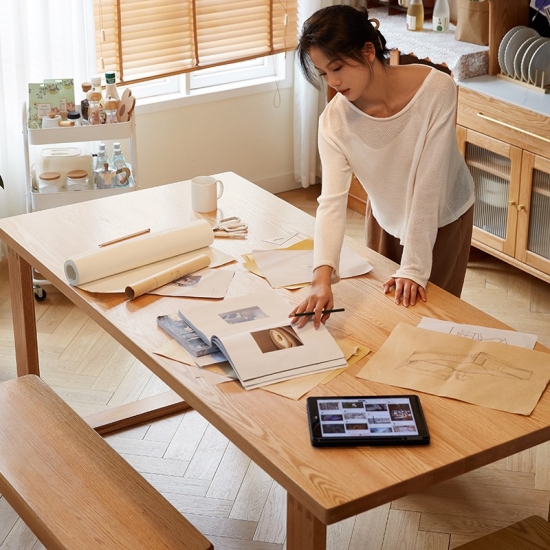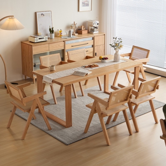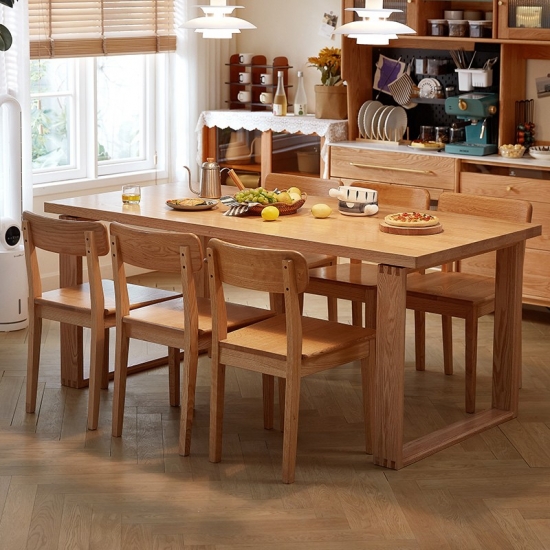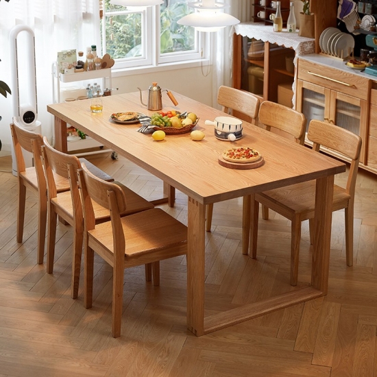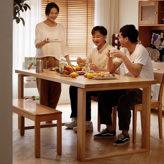 LINSY solid wood dining table is a sturdy and durable piece of furniture designed for dining rooms. It is made entirely of a single type of oak, without any veneers or layers. LINSY solid wood dining table offers a natural and appealing aesthetic that enhances the beauty of any dining space.