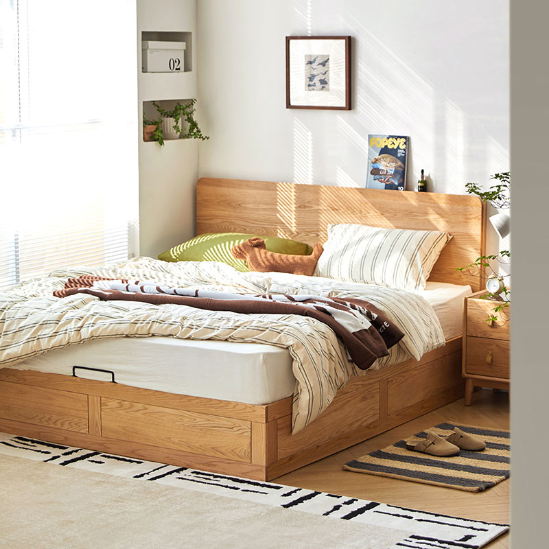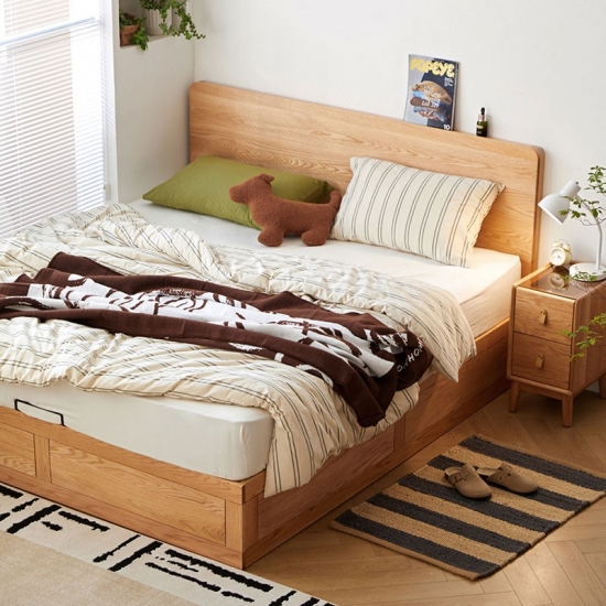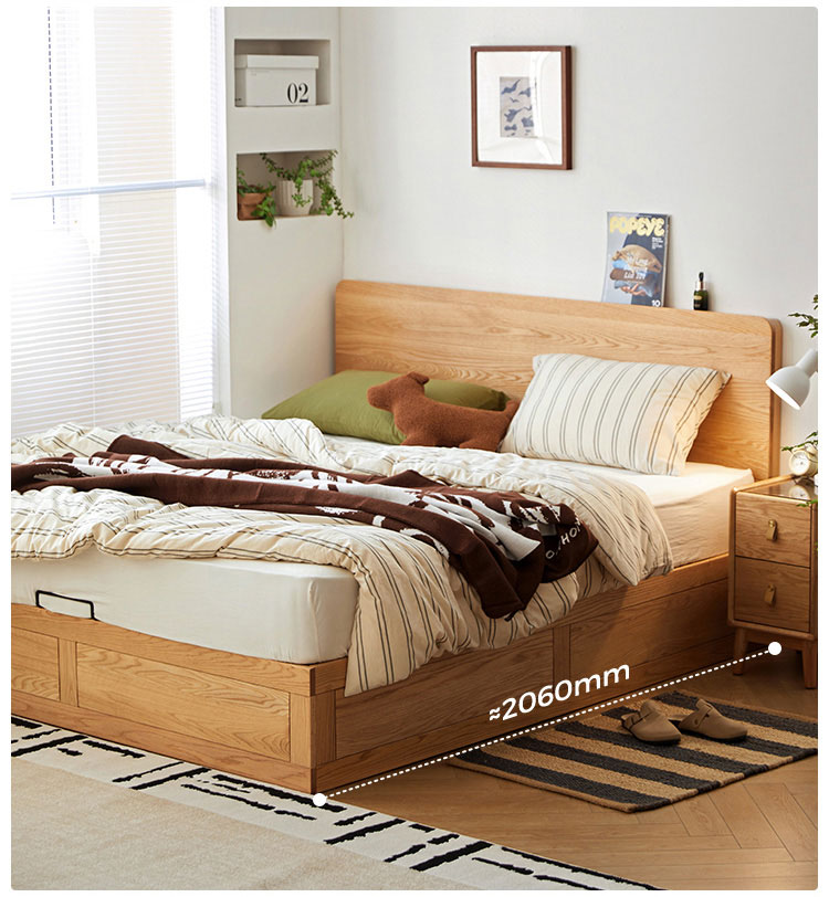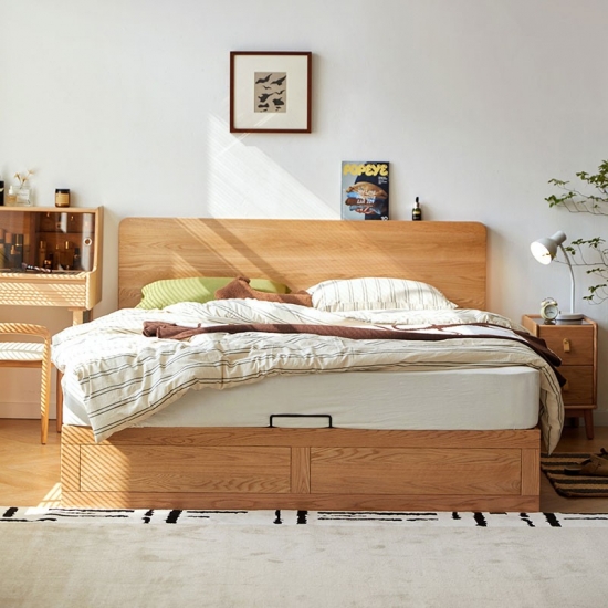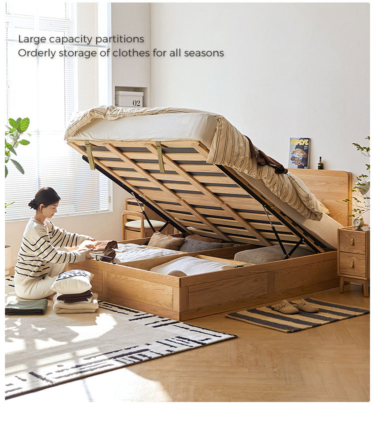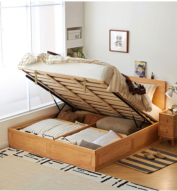 Crafted from premium solid wood, this high-storage bed combines timeless craftsmanship with intelligent space-saving solutions. The lift-up hydraulic mechanism reveals a spacious under-bed compartment, perfect for storing seasonal bedding, clothing, or personal items—keeping your bedroom clutter-free.
