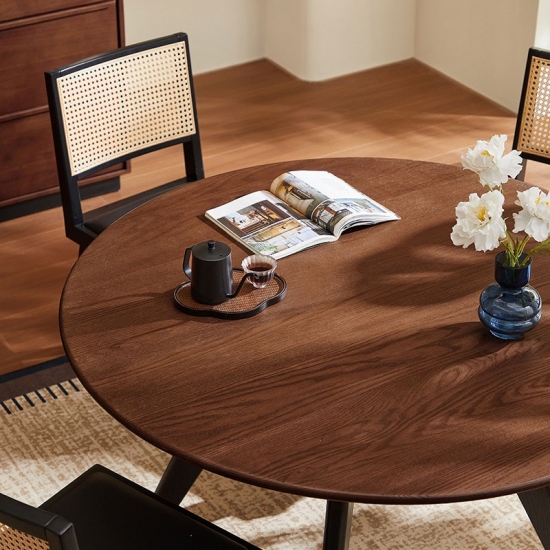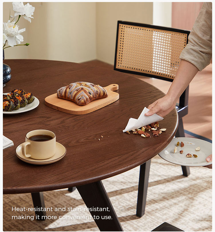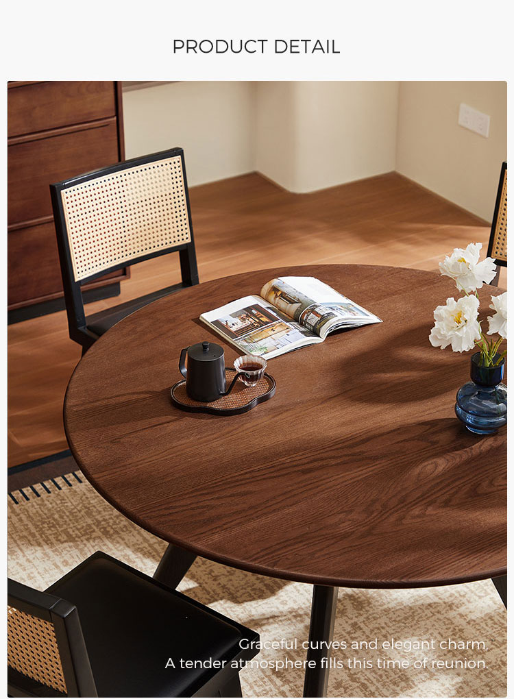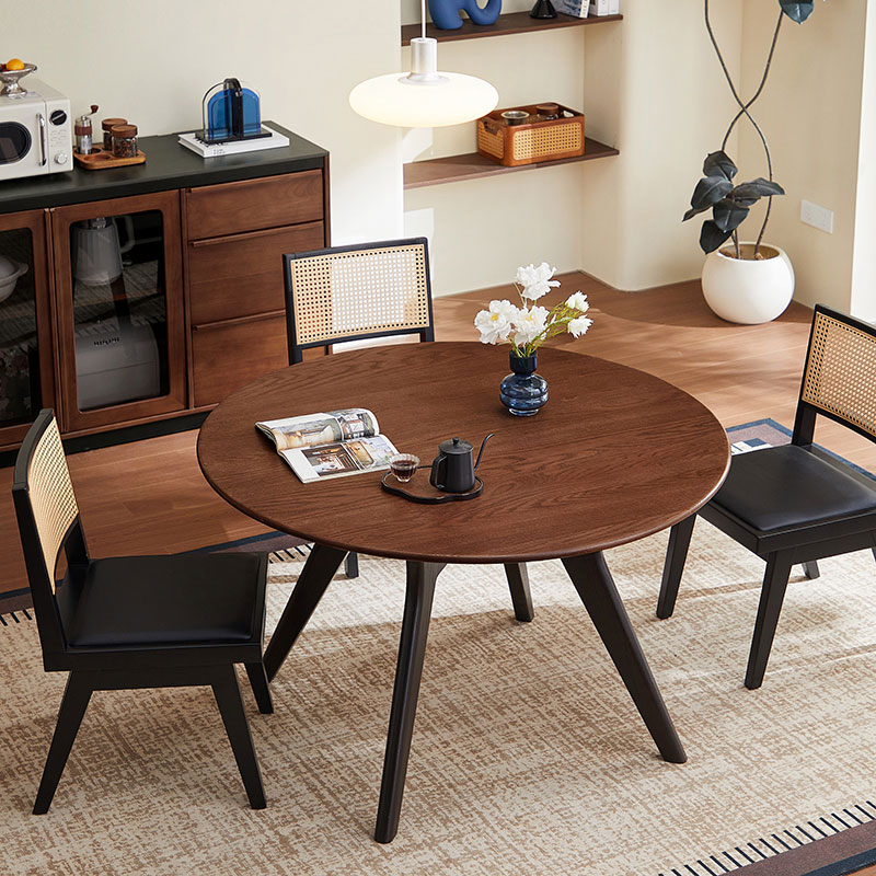 Crafted for connection, this Round Brown Solid Wood Dining Table brings warmth and enduring style to your dining space. Its rich, natural wood grain and smooth circular design encourage easy conversation and a welcoming atmosphere. Perfectly sized to seat 6-8, it is the ideal centerpiece for everyday meals and special gatherings. Built from solid wood for generations of use, this table is where lasting memories are made.