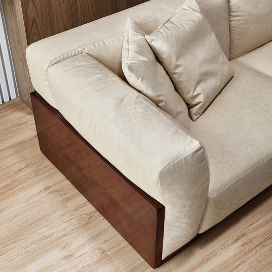 Seat cushion is filled with latex and high density foam, giving a softer seating experience. Wide armrest and curved inclined design, with outside solid wood cover give it a claming shape and high standard look.