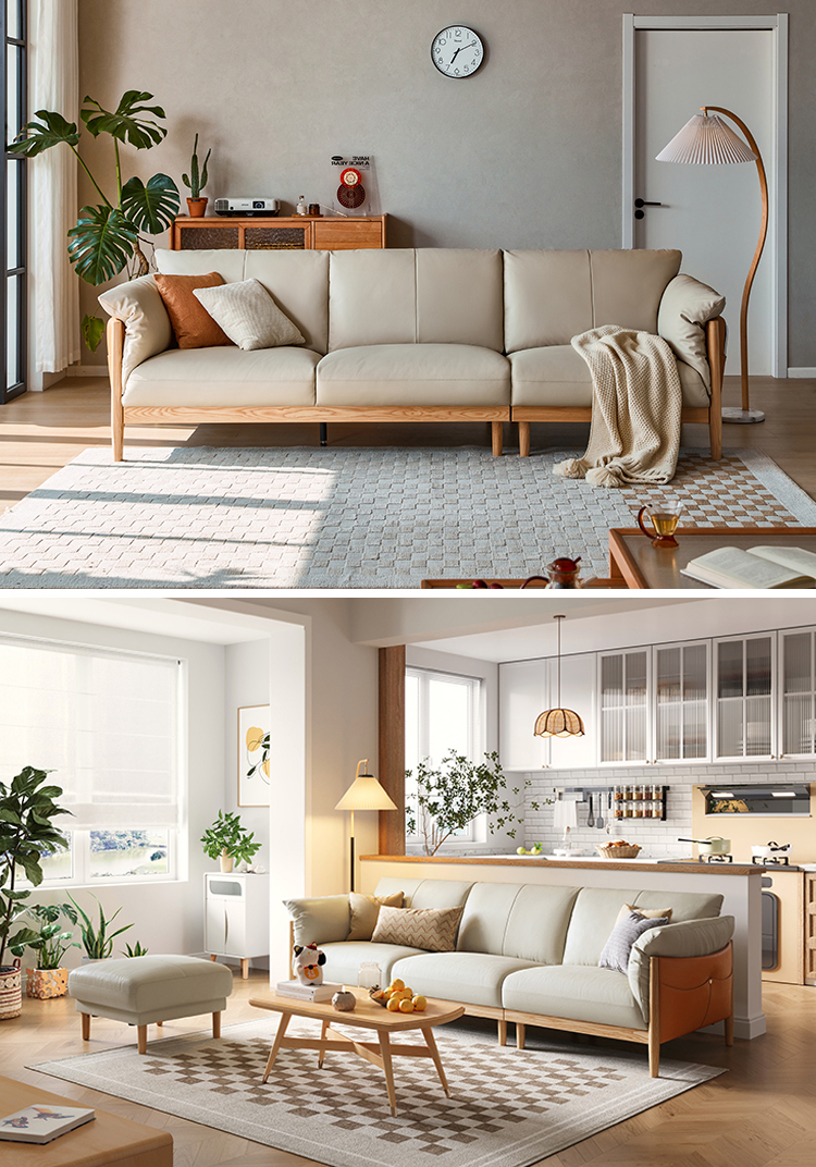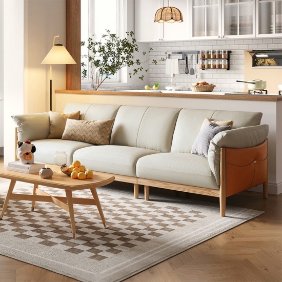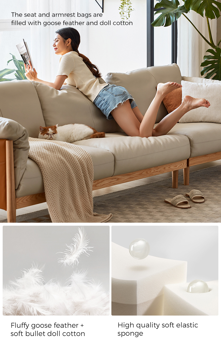 Light Color Three Seat Soft Leather Sofa for Home and Hotel Use PS087-A |