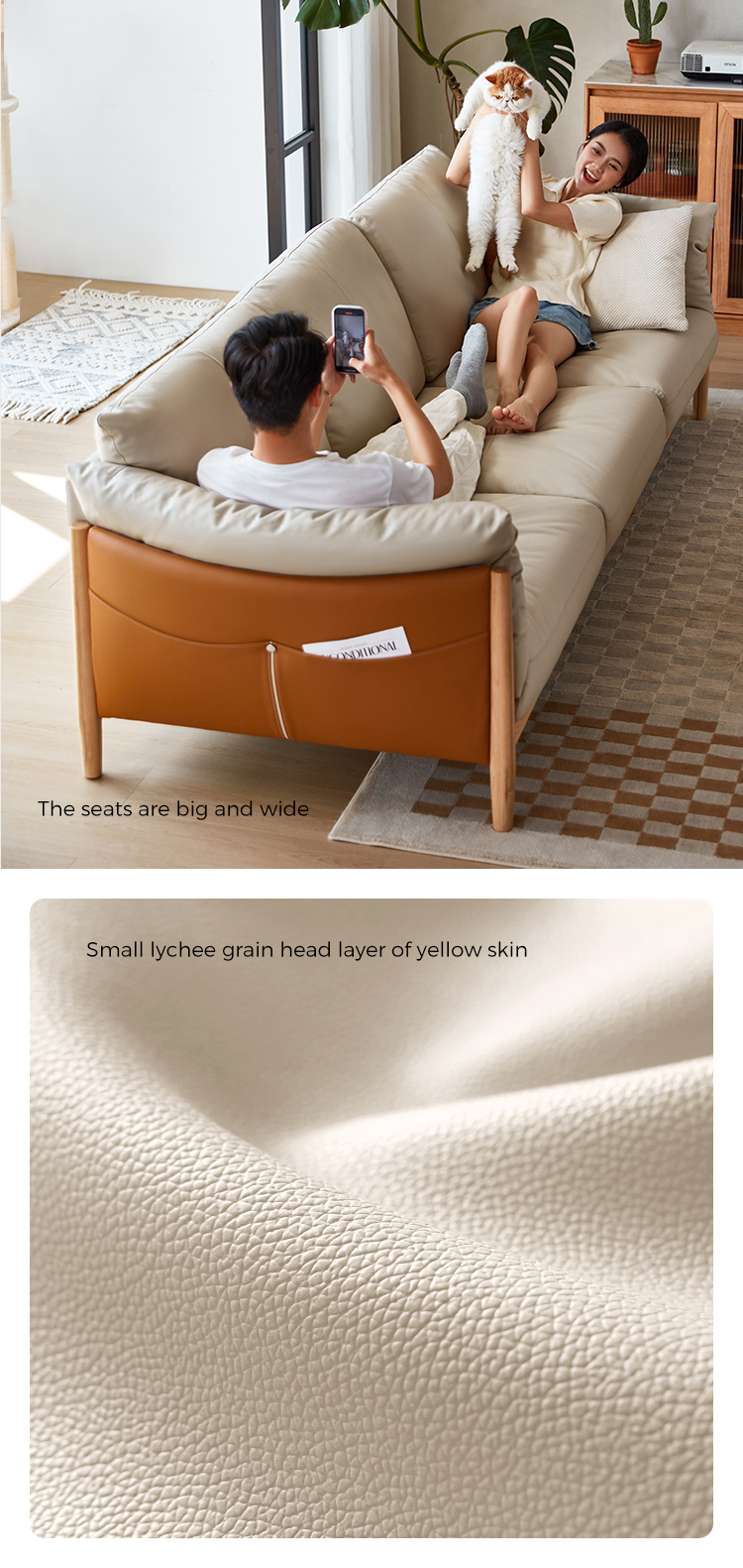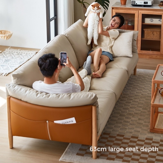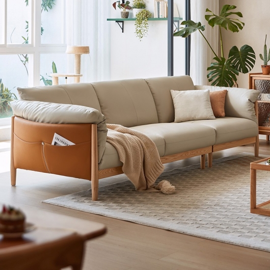 Come to have a look for the new arrival leather sofa with wood feet. It is made from solid wood frame, the sturdy corner-blocked frame is roomy enough for big families and big-time loungers. Smooth leather cushions make a soft landing for years to come.