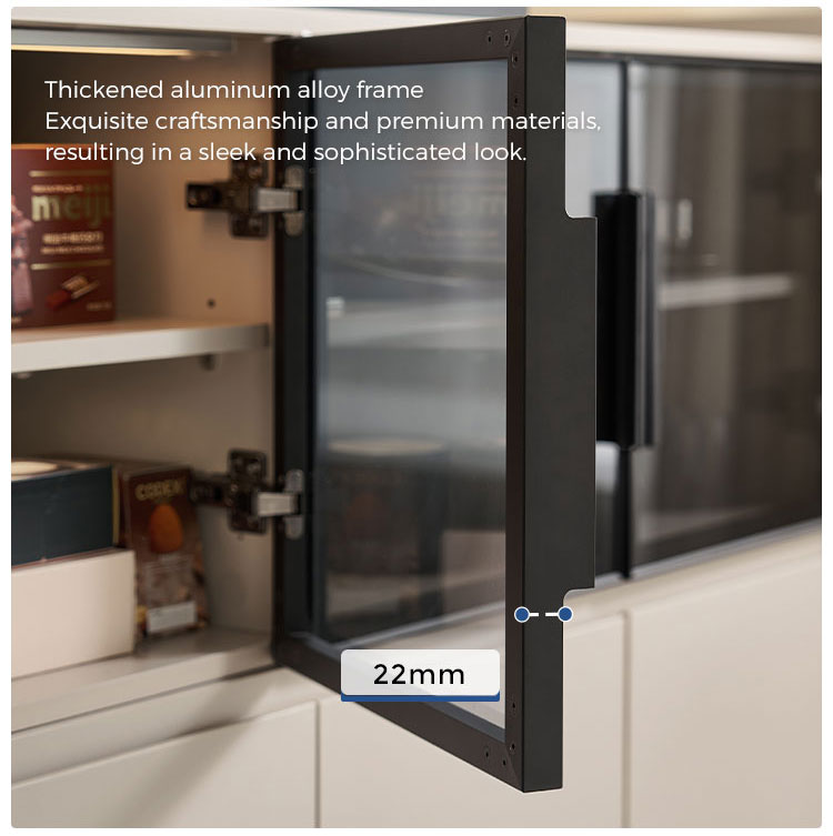 The standout feature is its large glass-panel doors, which allow you to stylishly showcase cherished dinnerware, glassware, or decorative items while keeping them dust-free. This creates a visually light and open feel. Complementing the glass doors are multiple spacious drawers, providing ample and highly organized concealed storage. These drawers are ideal for neatly stashing cutlery, table linens, utility items, or any living room essentials, ensuring everything has its place.