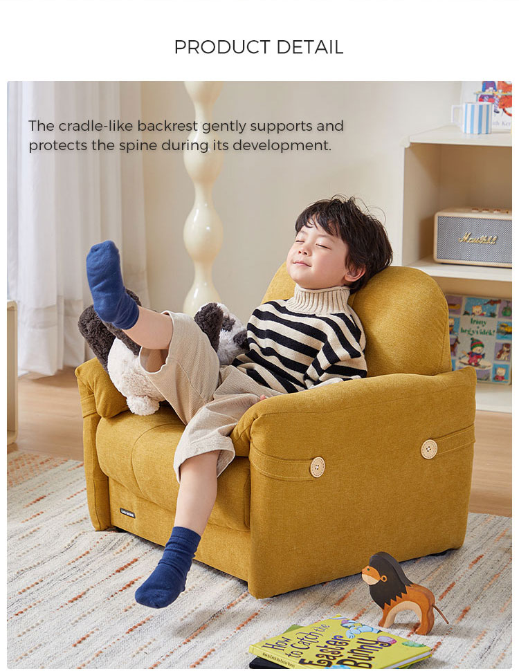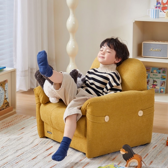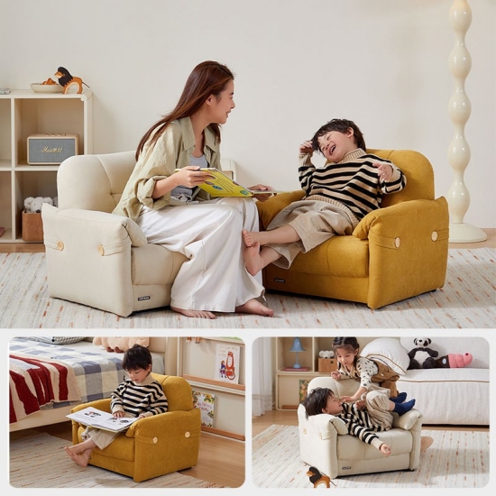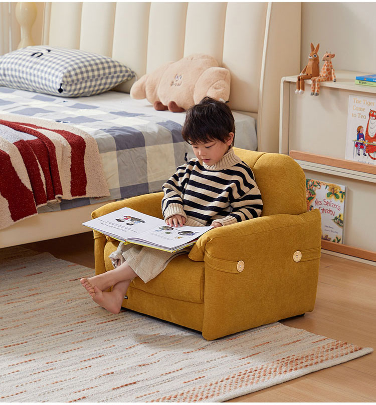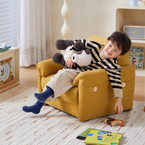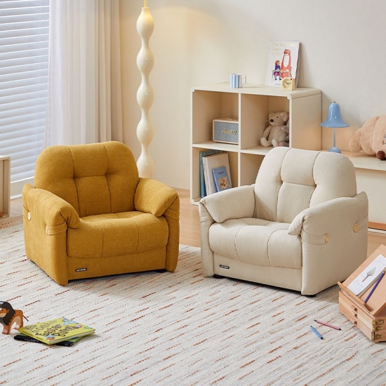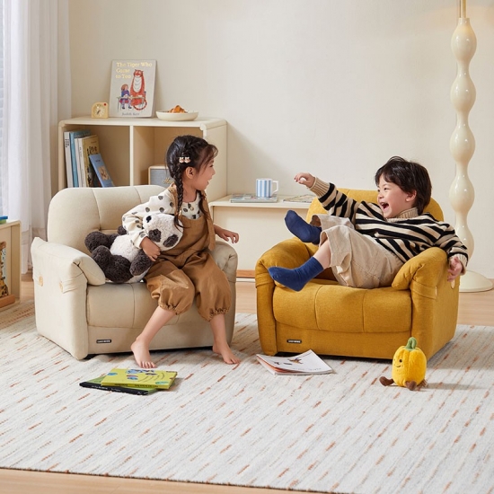 Give your little one their very own 'grown-up' seat with our adorable kids' fabric sofa chair. This mini armchair combines a cute, huggable design with the practicality parents need. Whether you choose the vibrant Mustard Yellow or the calming Almond White, its easy-to-clean fabric and sturdy frame make it the perfect addition to any playroom or bedroom. It's not just a chair—it's their favorite new spot for storytime!