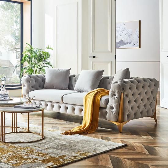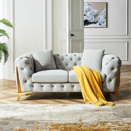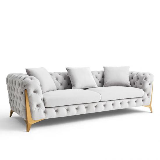 LINSY Home Furniture Chesterfield Style Button Tufted Sofa Set Fabric Couches For Living Room Metal Legs S1015 |