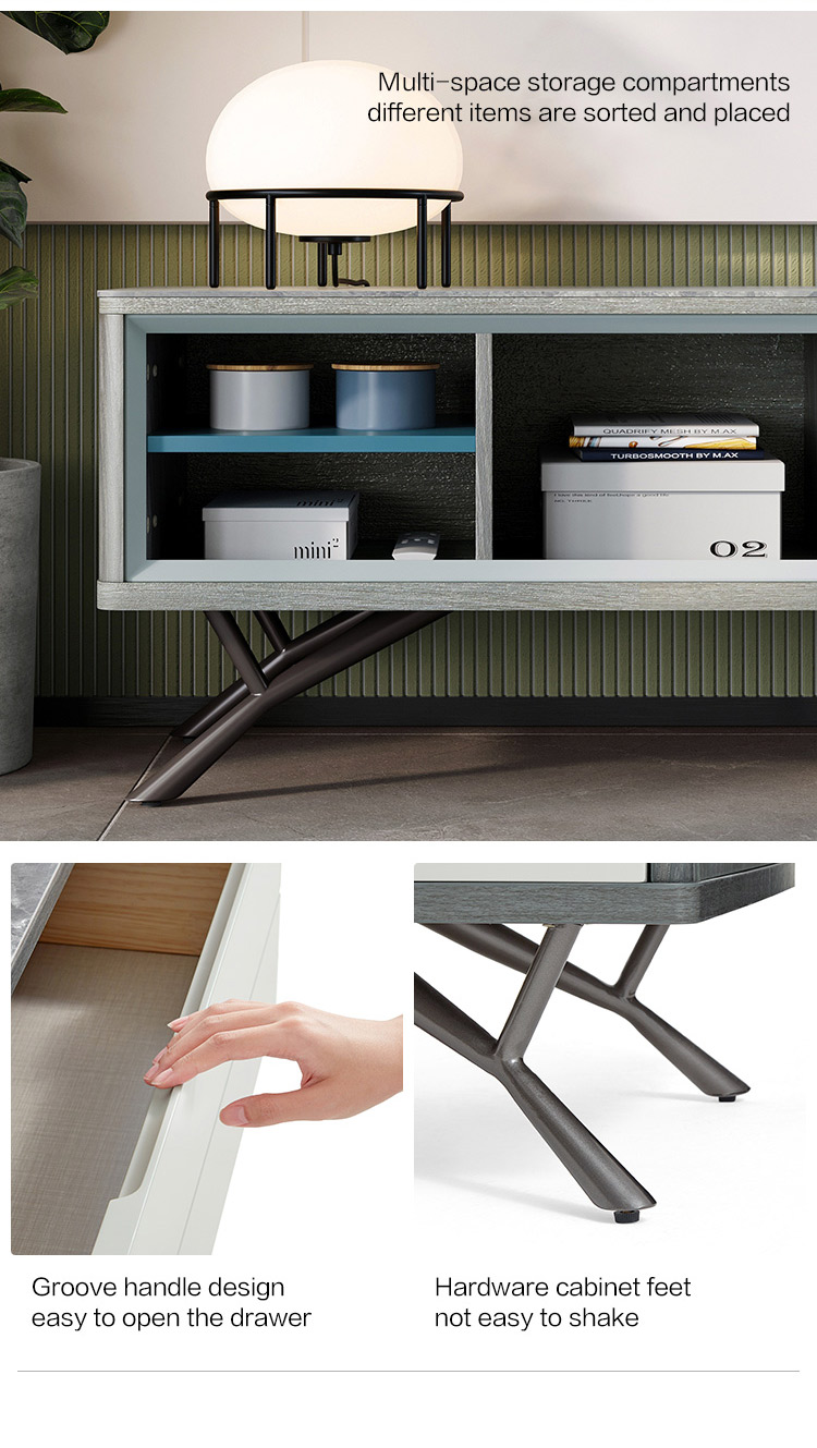 This TV cabinet has scalable storage space, you can adjust the size according to your personal storage needs.