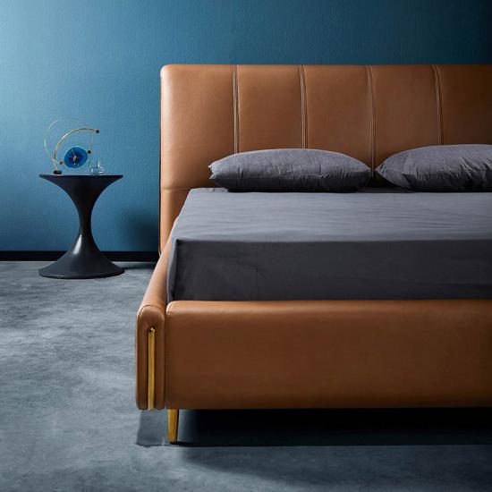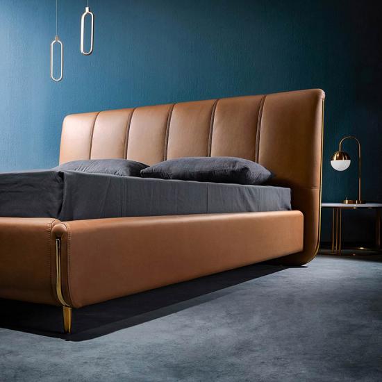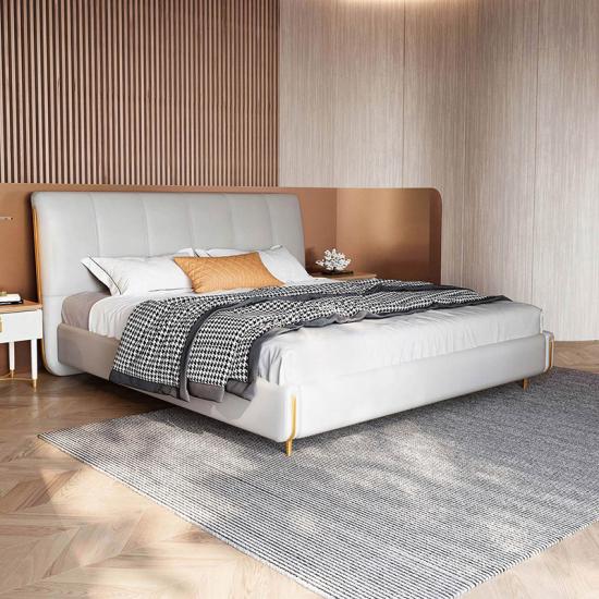 Leather Upholstered, Elegant appearance, Wood Slat |