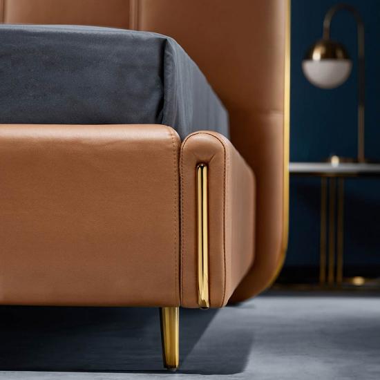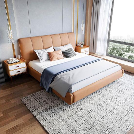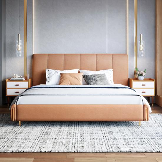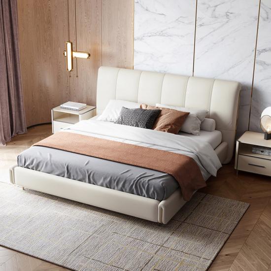 7Linsy Cushion Upholstered Bed Frame with Leather Headboard R292