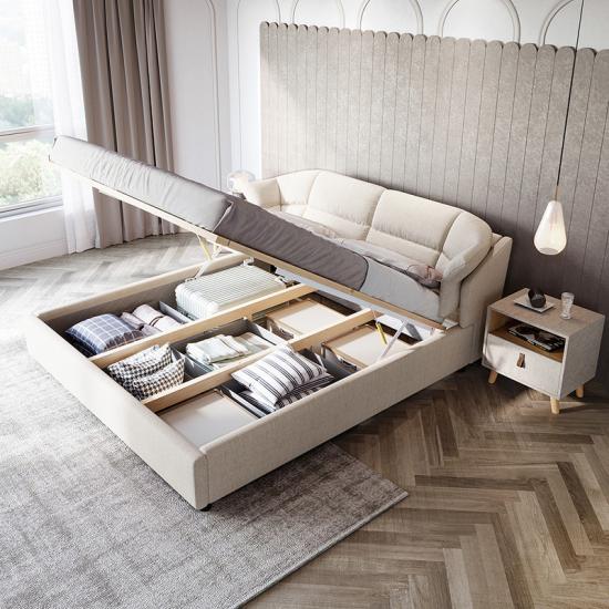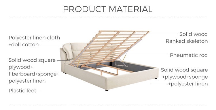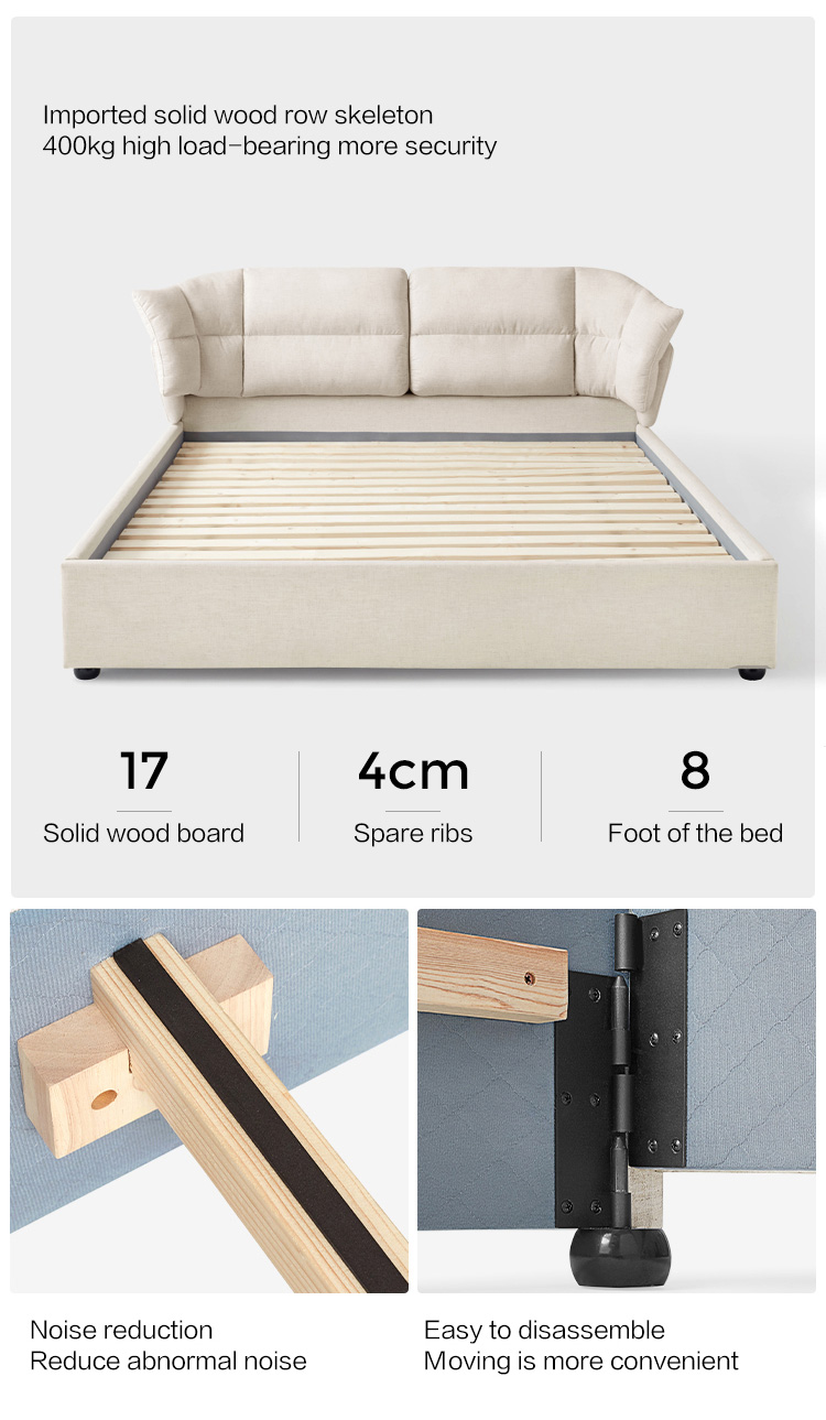 LINSY Upholstered Bed With Wood Frame is a high-density foam padded hardwood and plywood inner frame.