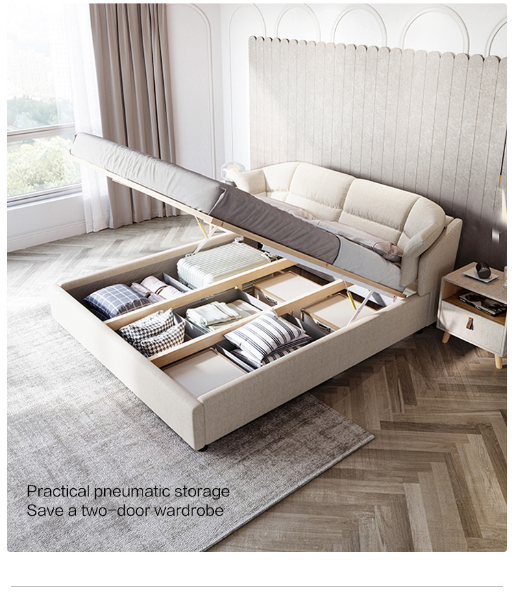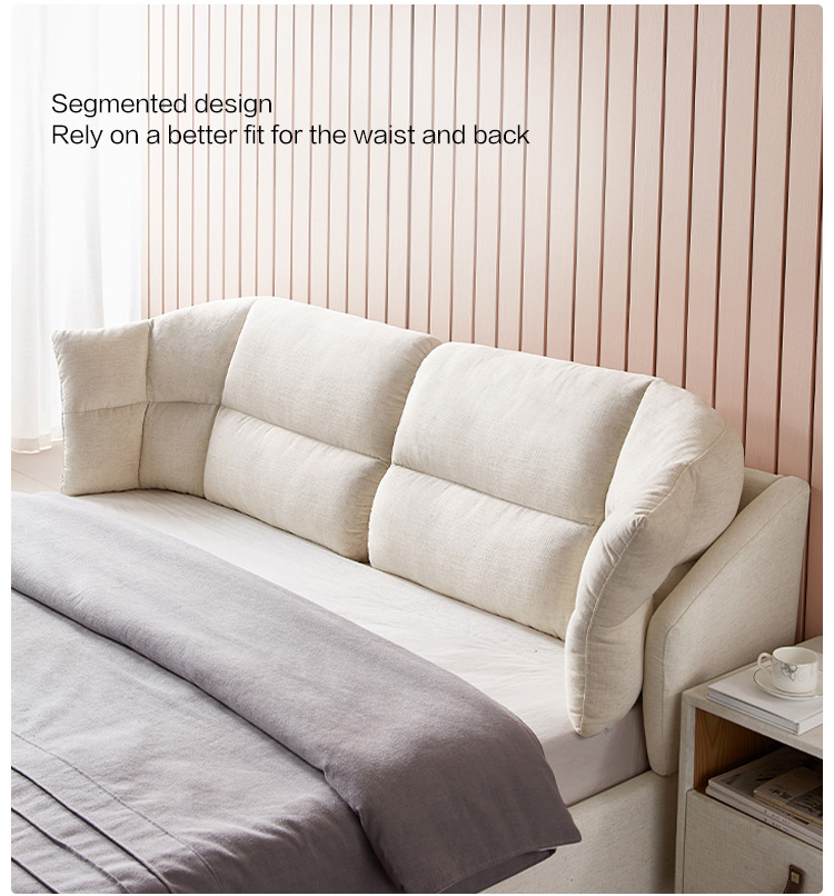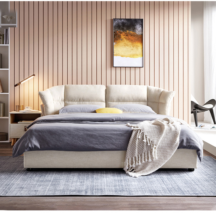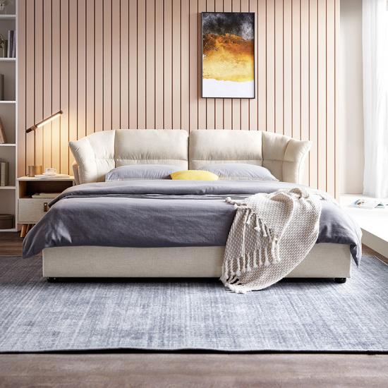 LINSY White Color Upholstered Light Luxury Fabric Bed