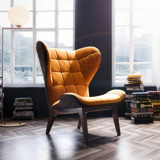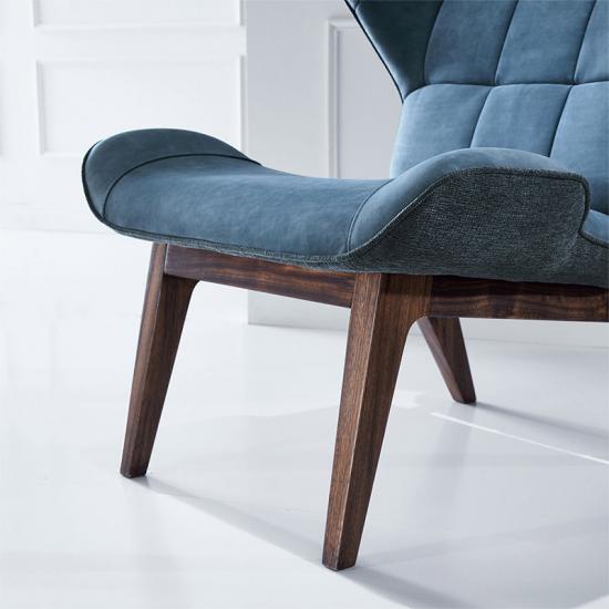 Thoughtfully designed with the retro wingback, tapered legs in a printed woodgrain finish and biscuit tufted patterns, our statement accent chair could be a focal point in your room.