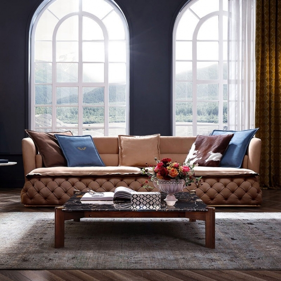 Chesterfield Sofa offers reliable support and a stunning club-style silhouette. With the arms and back of the same height, this sofa makes a striking statement