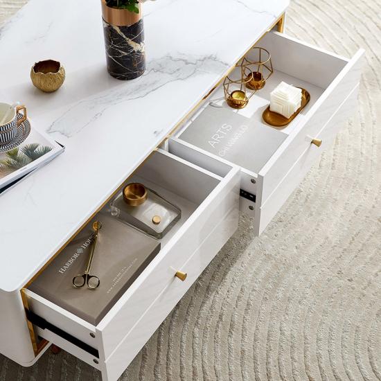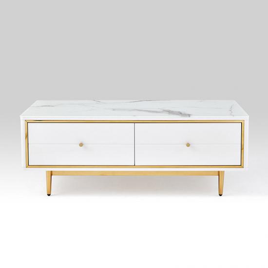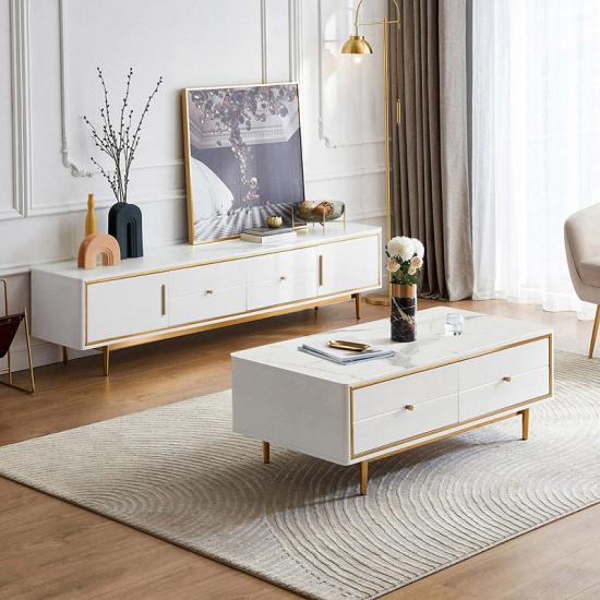 Linsy Modern Wooden Marble Metal Side Granite Luxury Tv Tables Set Rectangular Coffee Table DZ1M-C |