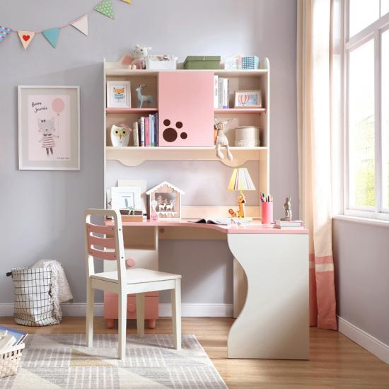 Student girl pink children's room desk bookcase combination corner bookshelf furniture EA2V