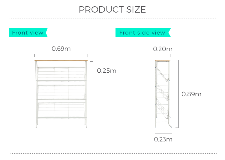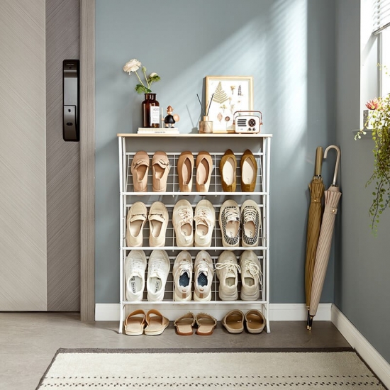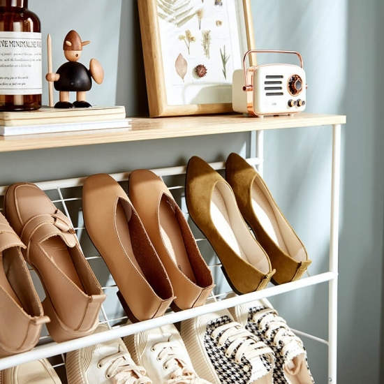This metal shoe organizer is made of high-quality metal tubes and high toughness plastic connector which is waterproof, dust-proof and oil-proof. It could be a display stand for your toys, books,plants and more. Don't miss the chance the get a new one for your house now.