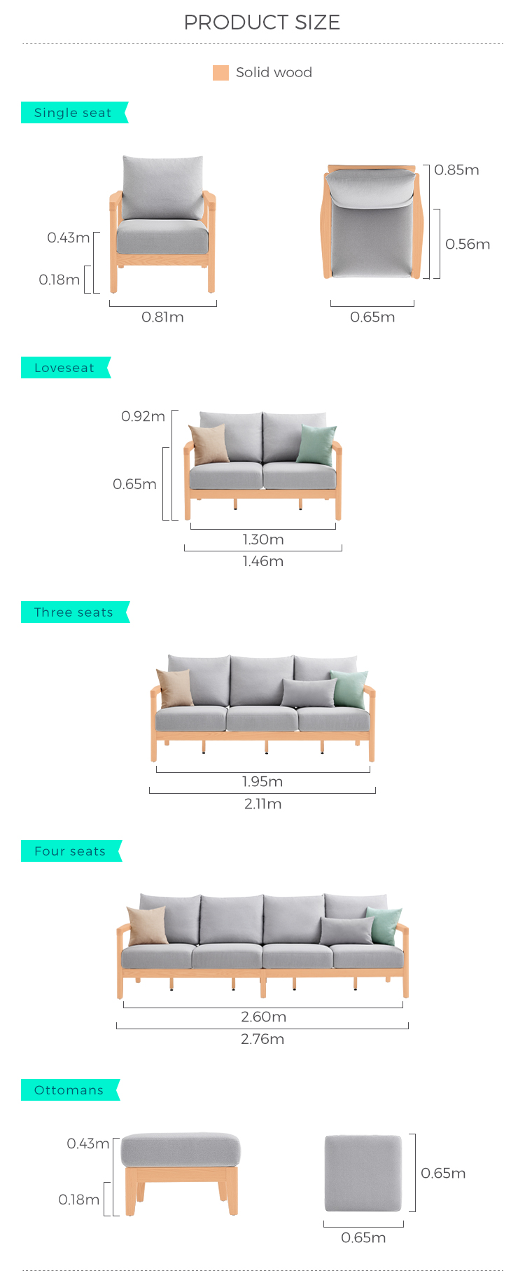 LINSY Wood Furniture Living Room Fabric Sofa CR2K-D1Next :