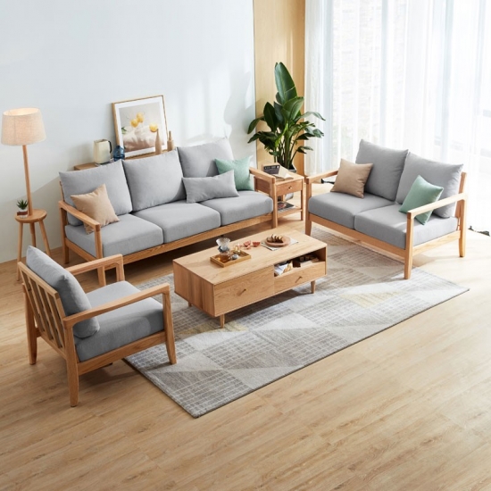 7LINSY Living Room Furniture Solid Wood Sofa Set with Fabric BH2K-F