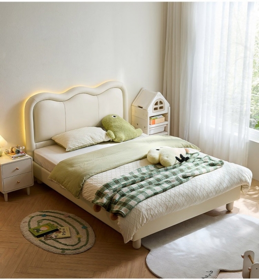 LINSY Cream White Kids' Bed with Leather Headboard TBC357-AIf you are interested in our products and want to know more details,please leave a message here,we will reply you as soon as we can.