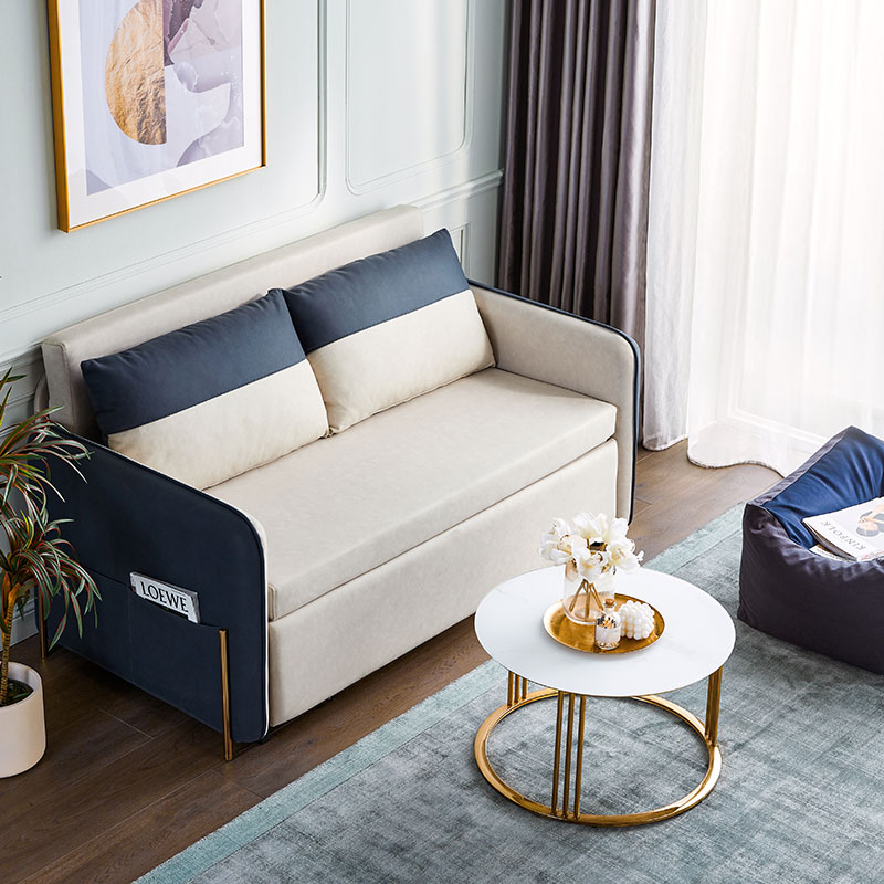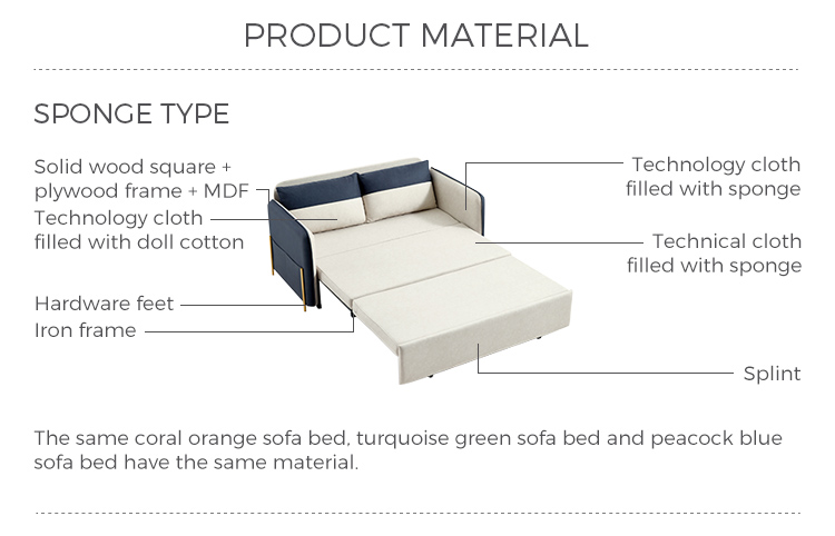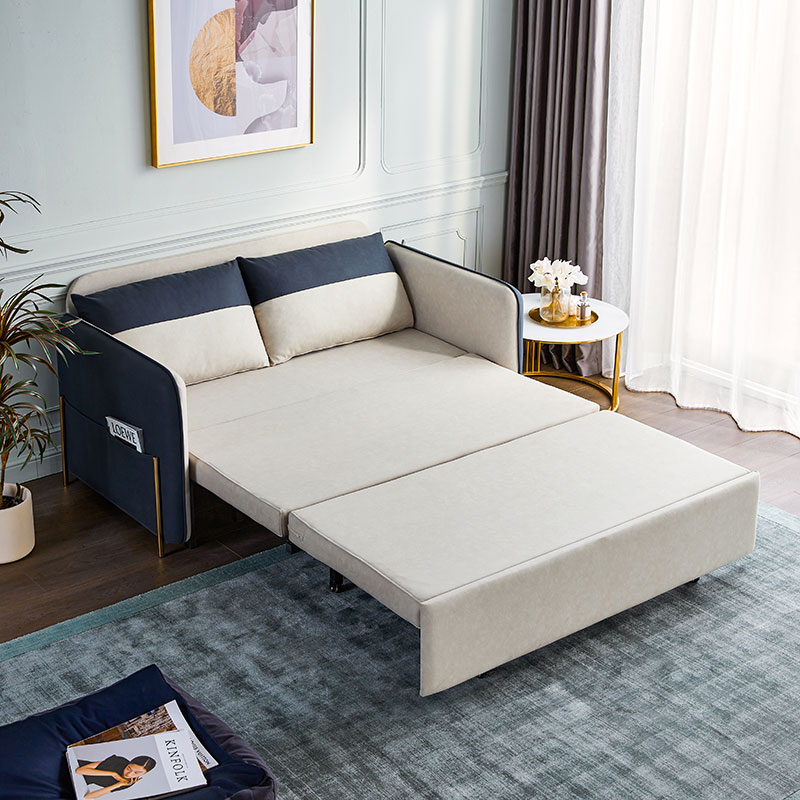 -It's fully upholstered in fabric with comfortable foam filler, providing an optimal coziness for sitting or lying. Come with two thick, oblique backrests, this sofa bed offers steady yet soft support for your lumbar, adding extra comfort. Constructed from durable metal, soft fabric, and high-density foam, this piece is practical enough for long-term use. No matter how you choose to display this piece, it's sure to make a great effect!