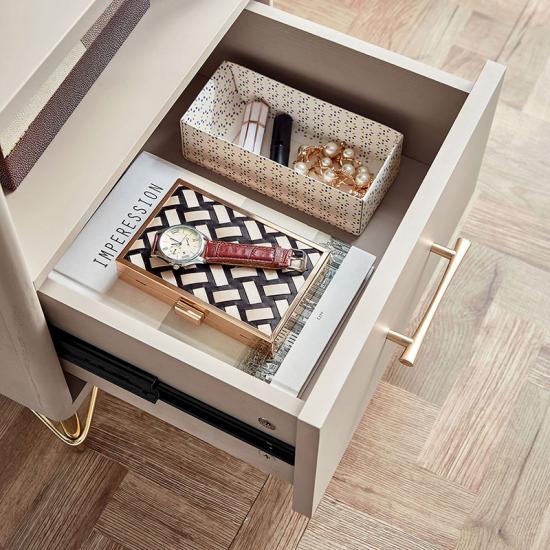 Modern design: White And Gold Night Stand with sleek lines and simple silhouettes, rounded edges and corners to avoid bumps and injuries in daily life; smooth and thick desktop, easy to clean. Bedroom Bedside Tables are very suitable for small spaces, apartments, and dormitories.