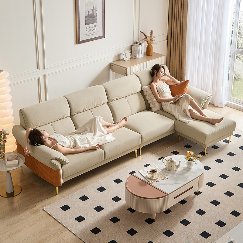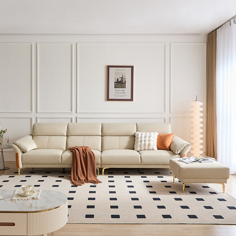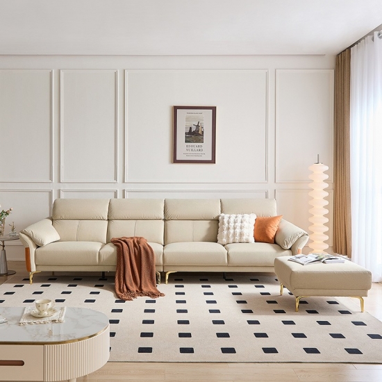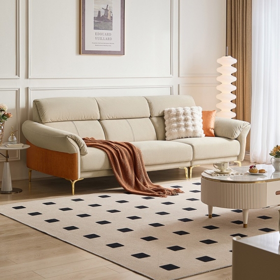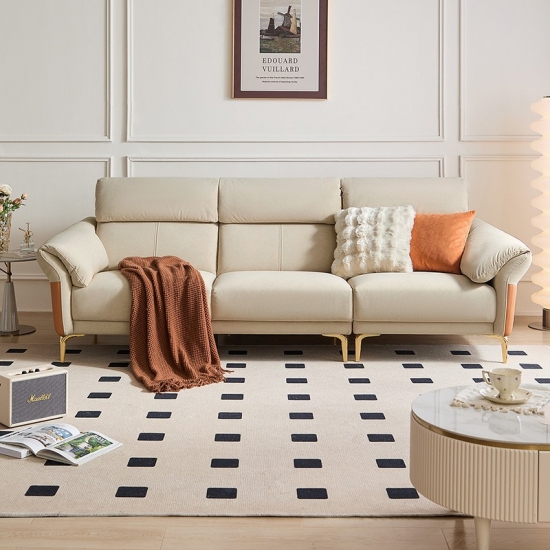 This stylish and comfortable sofa is upholstered in a soft beige-colored fabric, adding a warm and inviting touch to your living space. The high-quality fabric is both durable and easy to maintain, making it a practical choice for families with kids or pets.