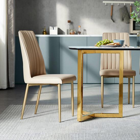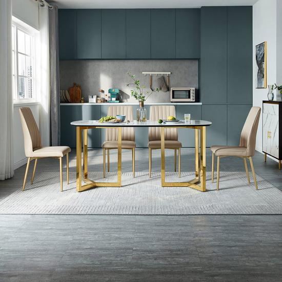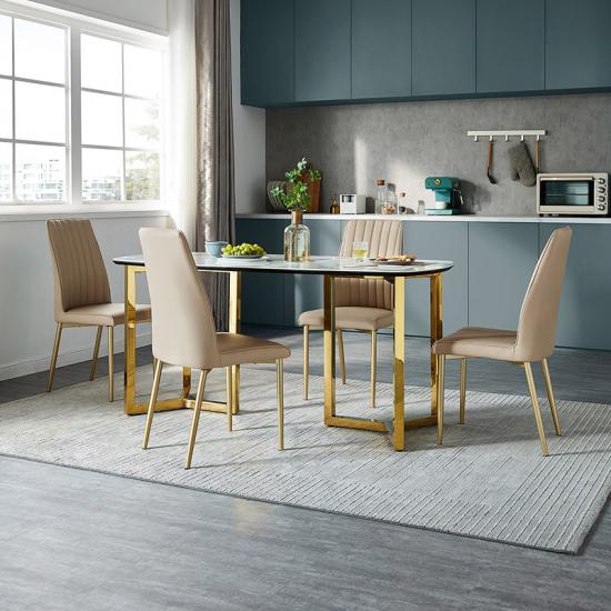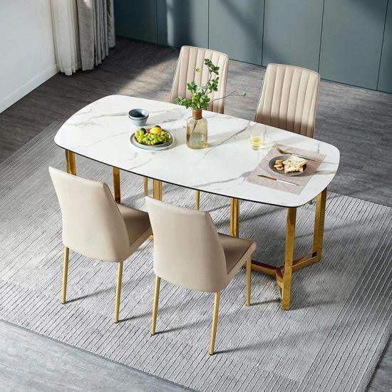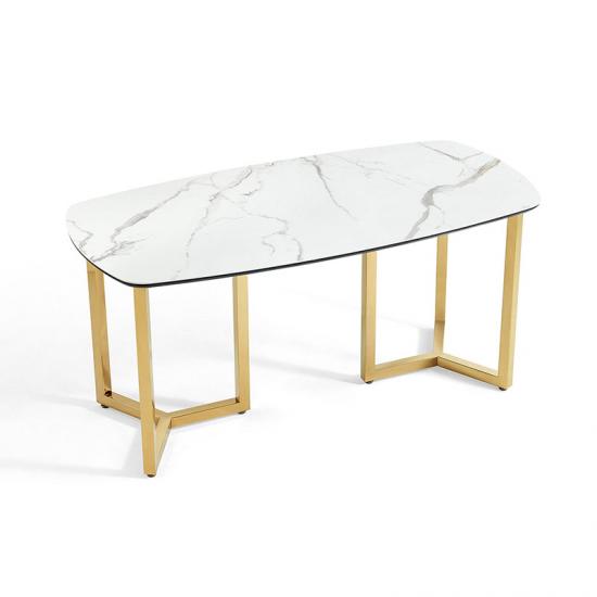 Linsy Stainless Steel Frame Dining Table Luxury Stone Top Dining Table With Gold Legs Restaurant Marble Modern Furniture LH001R1