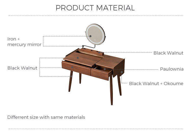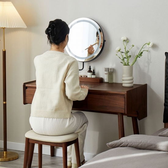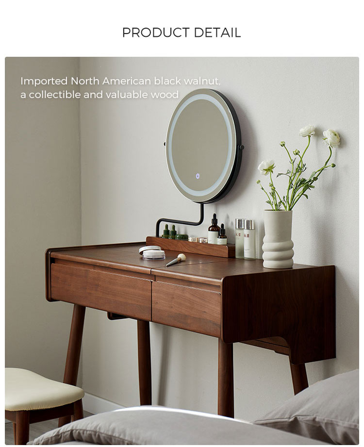 LINSY Mid-Century Walnut Dressing Table & Desk with Mirror RQ2C-A |