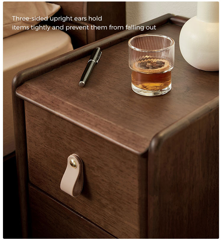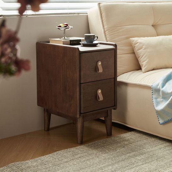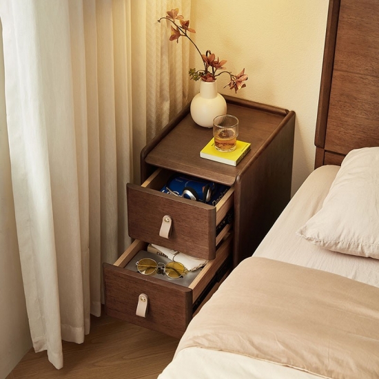 LINSY's elegantly crafted nightstand in a rich walnut finish offers the perfect blend of style and utility. Its ideal compact size fits seamlessly beside your bed, keeping essentials within easy reach.