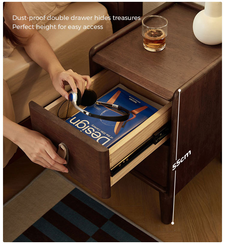 Ample Storage: Features two smooth-gliding drawers to neatly organize bedtime necessities, reducing clutter.