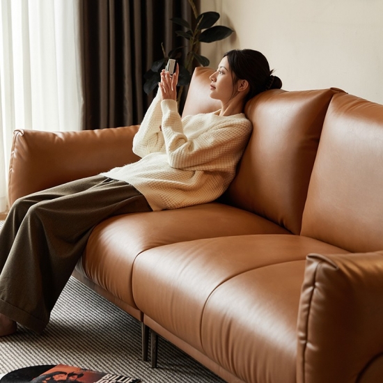 Our orange leather sofas transform ordinary spaces into conversation. From burnt orange (heritage vibe) to tangerine (modern pop)with high quality leather. It is big enough for you to sit and lean in the living room.