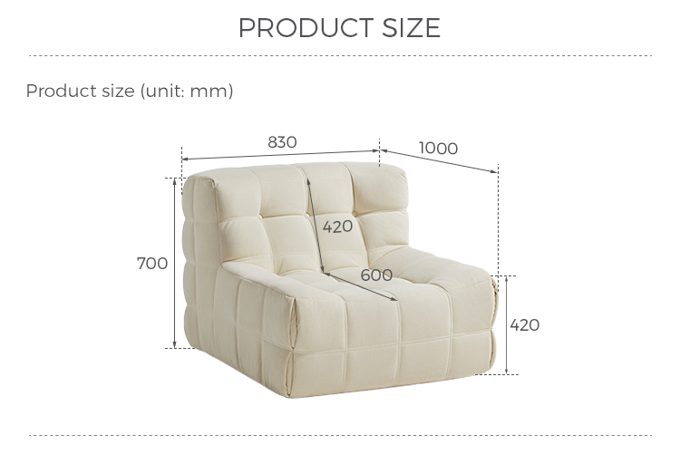 Elevate your living space with our modern single modular sofa chair, designed to blend sophistication and comfort. This piece is perfect for cozy reading corners, chic living rooms, or as an accent chair in your bedroom. Its compact size makes it an excellent choice for small spaces without compromising on style or function.