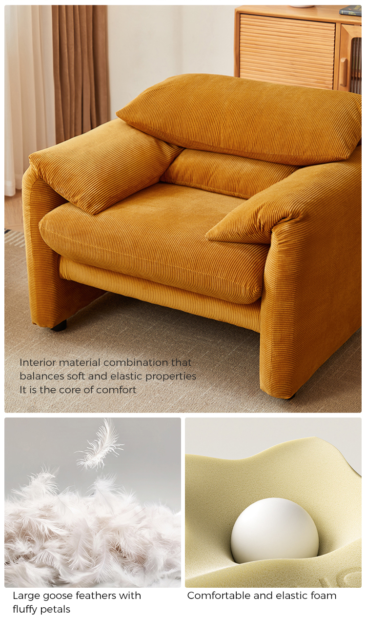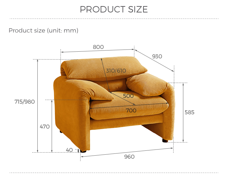 Elevate your living space with our modern single sofa chair, designed to blend sophistication and comfort. This piece is perfect for cozy reading corners, chic living rooms, or as an accent chair in your bedroom. Its compact size makes it an excellent choice for small spaces without compromising on style or function.