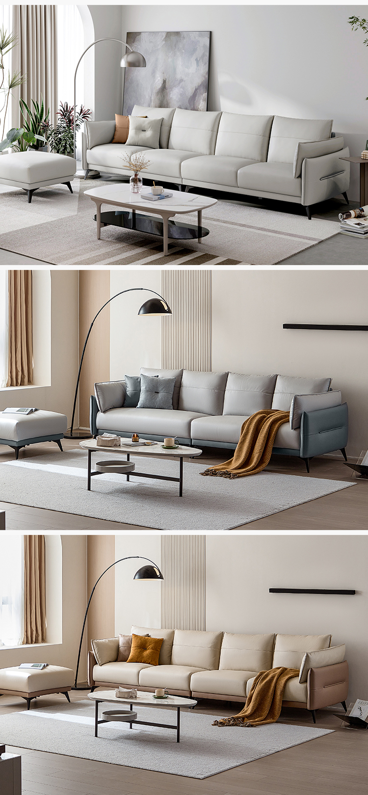 LINSY Modern Furniture Living Room Leather 4 Seat Sofa BS103-A |