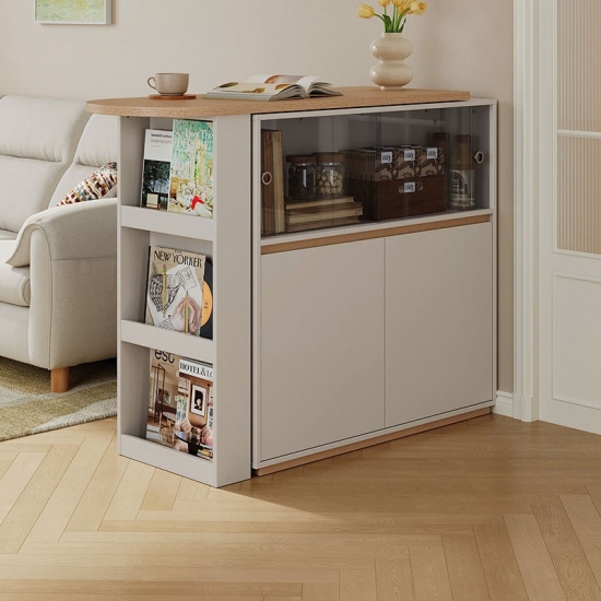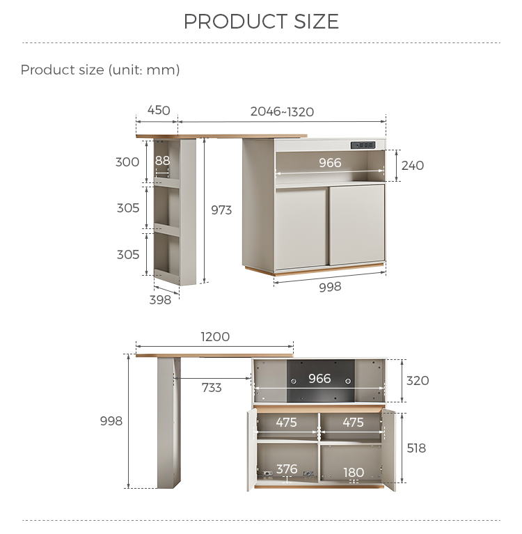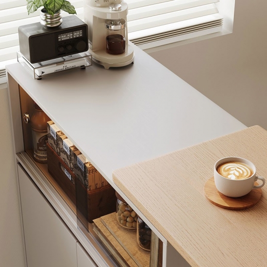 2. Dual-Function Top: Water-resistant, high-gloss surface for mixing drinks. Integrated marble or tempered glass zone for chilling bottles.