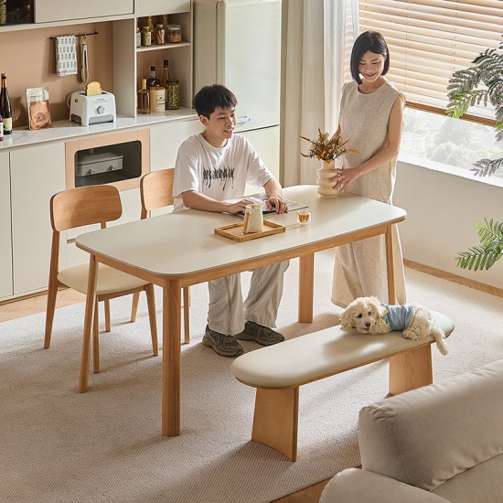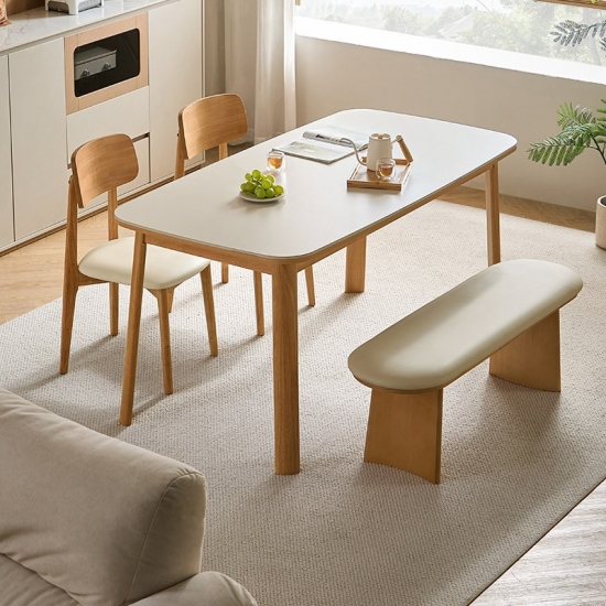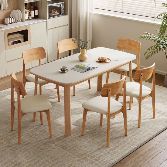 7LINSY Modern Rectangular Wood Frame Dining Table with Slab RG1R-A
