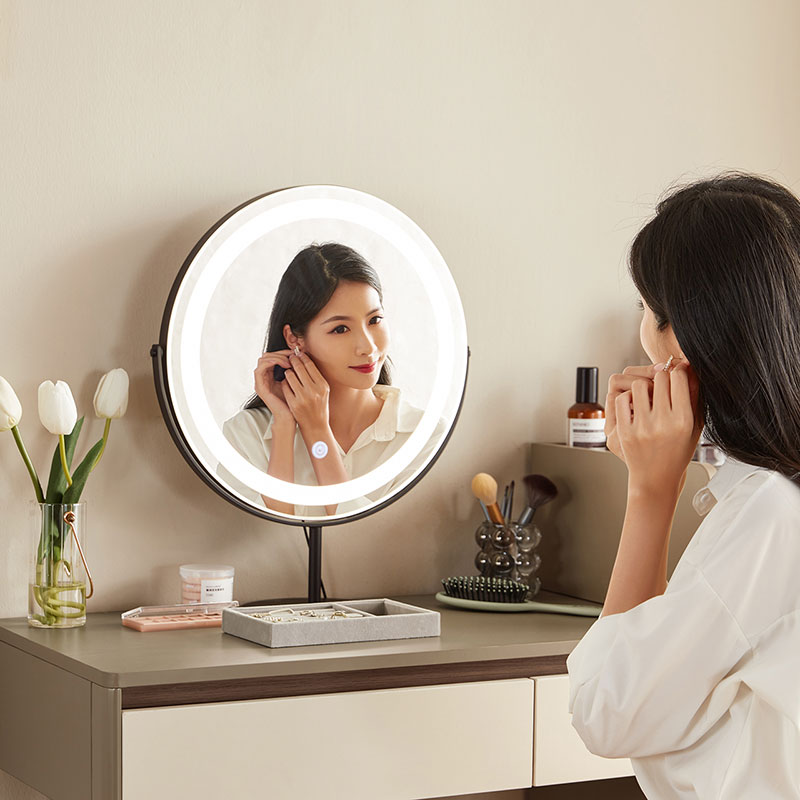 A modern table outside the bathroom gets you out of the toothbrush traffic jam and makes your beauty routine flow smoother. Add a mirror and a comfy dressing table chair or compact stool to complete the bedroom, and you have a calm corner to return to at any time of your day.