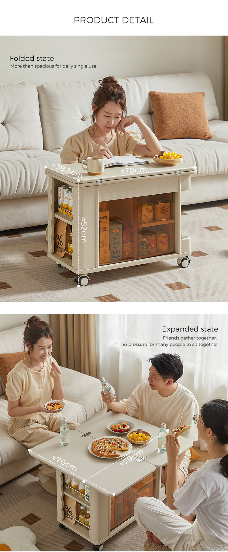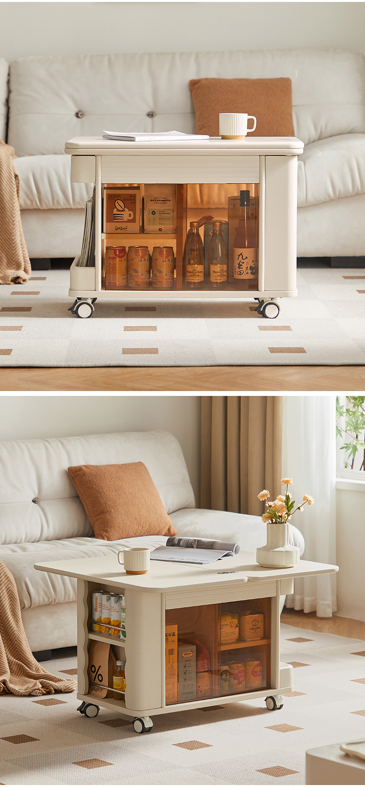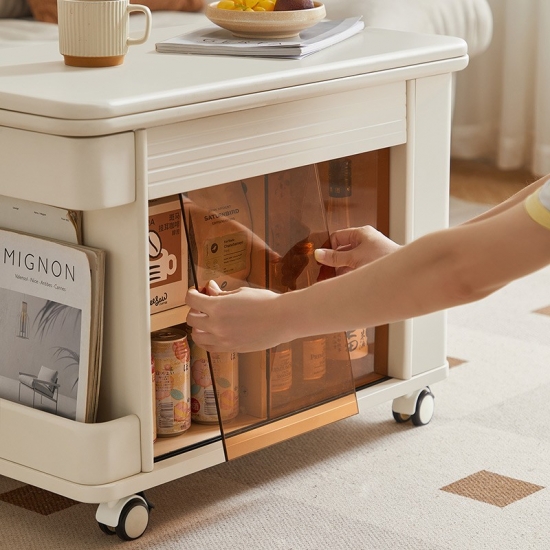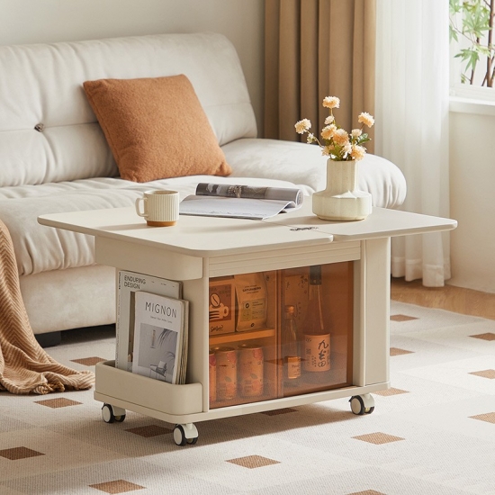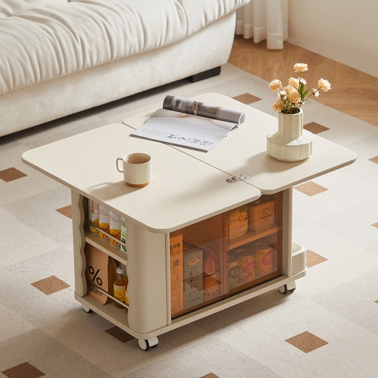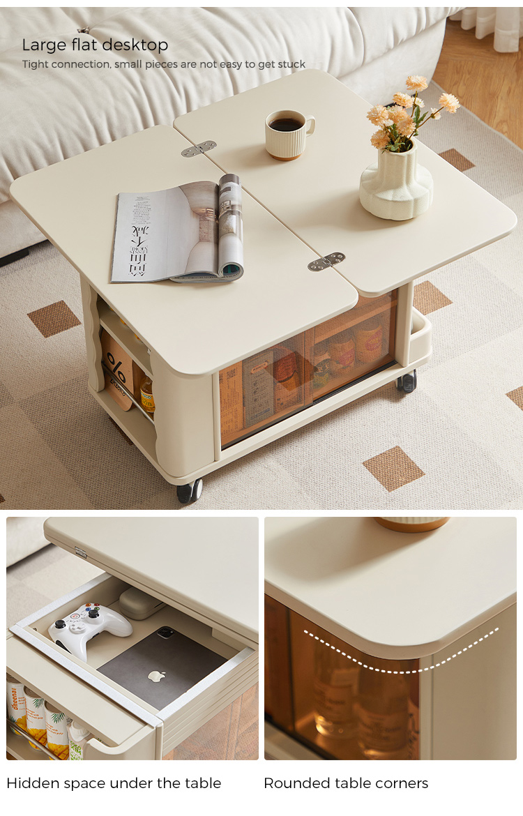 A small square coffee table that combines modern and vintage style It's here! Not only does it have a stylish design, but it also comes with double-layer multi-functional storage space, giving you and your furry friends a warm space to entertain together. The beige color is a warm design for your living room.