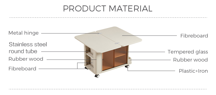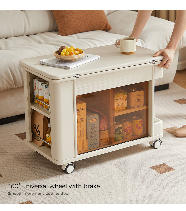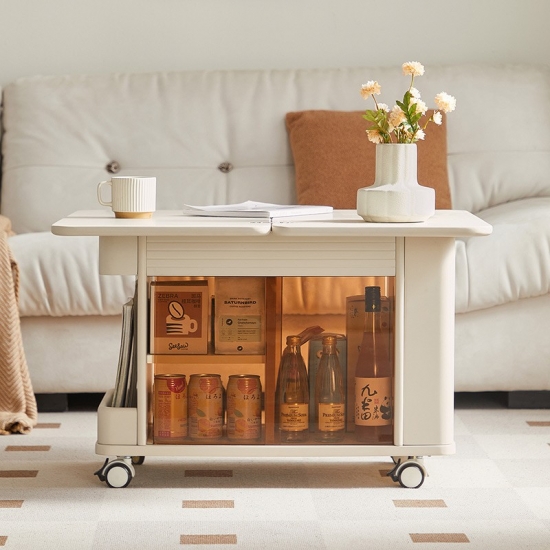 LINSY Modern Style Moveable Table Beige Color Coffee Table with Wheels LH202J1-A |
