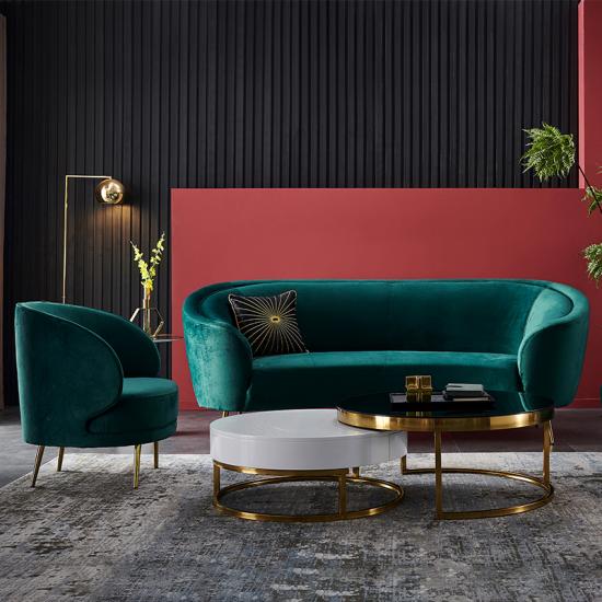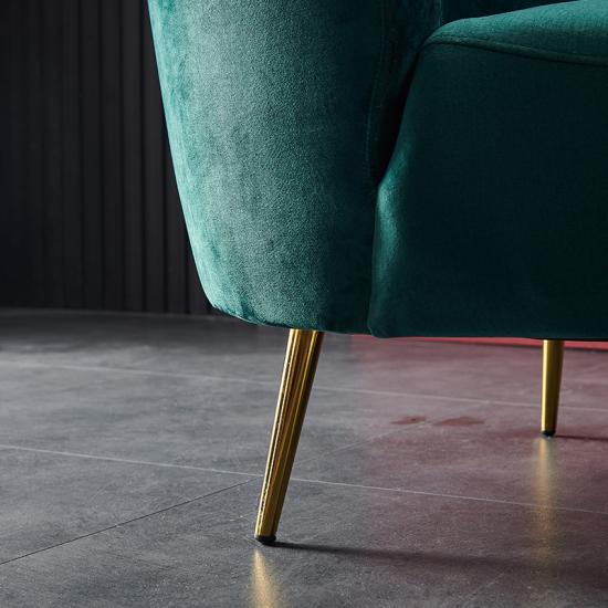 !The design itself is stunning. It combines thick cushioning with tufted velvet, sleek arms, tapered wooden legs, and an elegant look that makes your showroom or sample house up to another level.