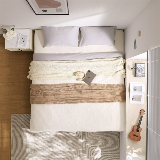 7LINSY Nordic Style Bedroom Furniture Double Bed with Wood Frame TBC047